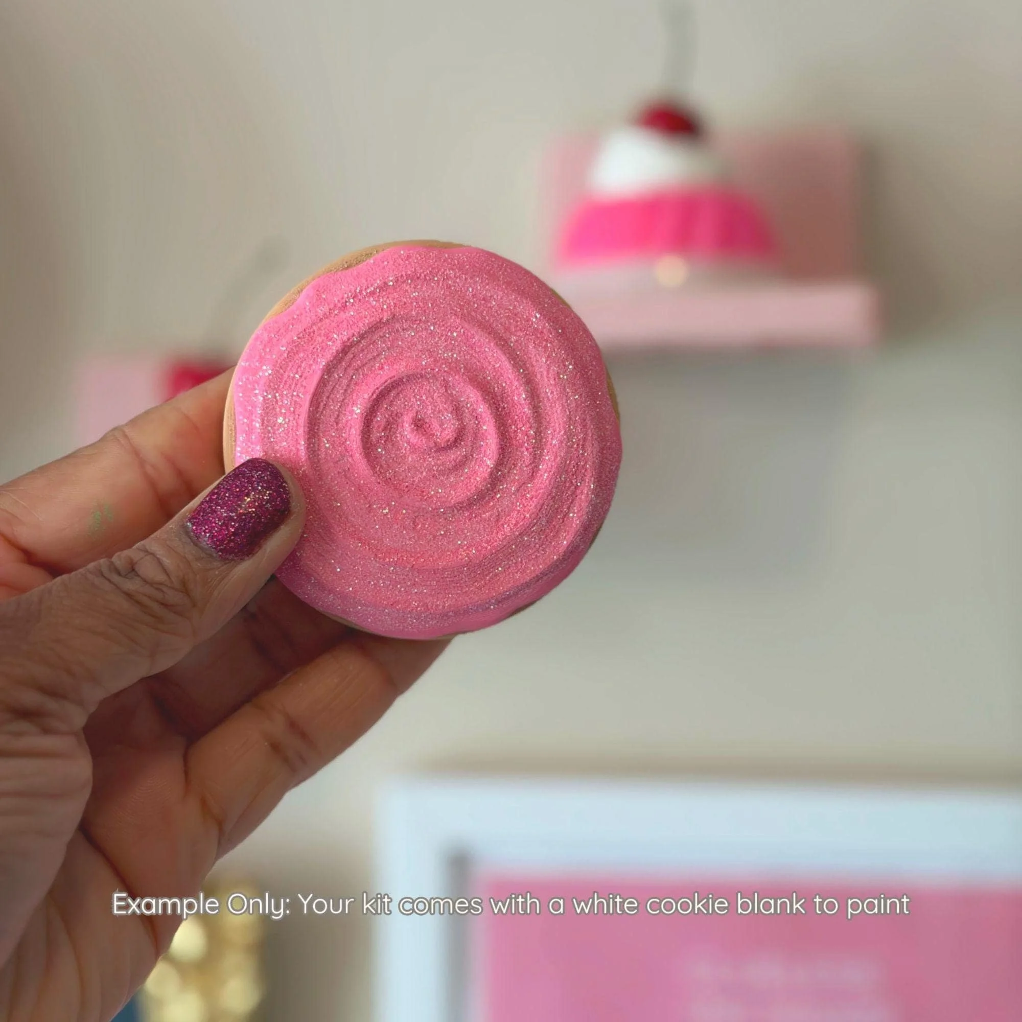 Just remember: painted cookies shown in photos are examples. Your kit includes an unpainted cookie to decorate.