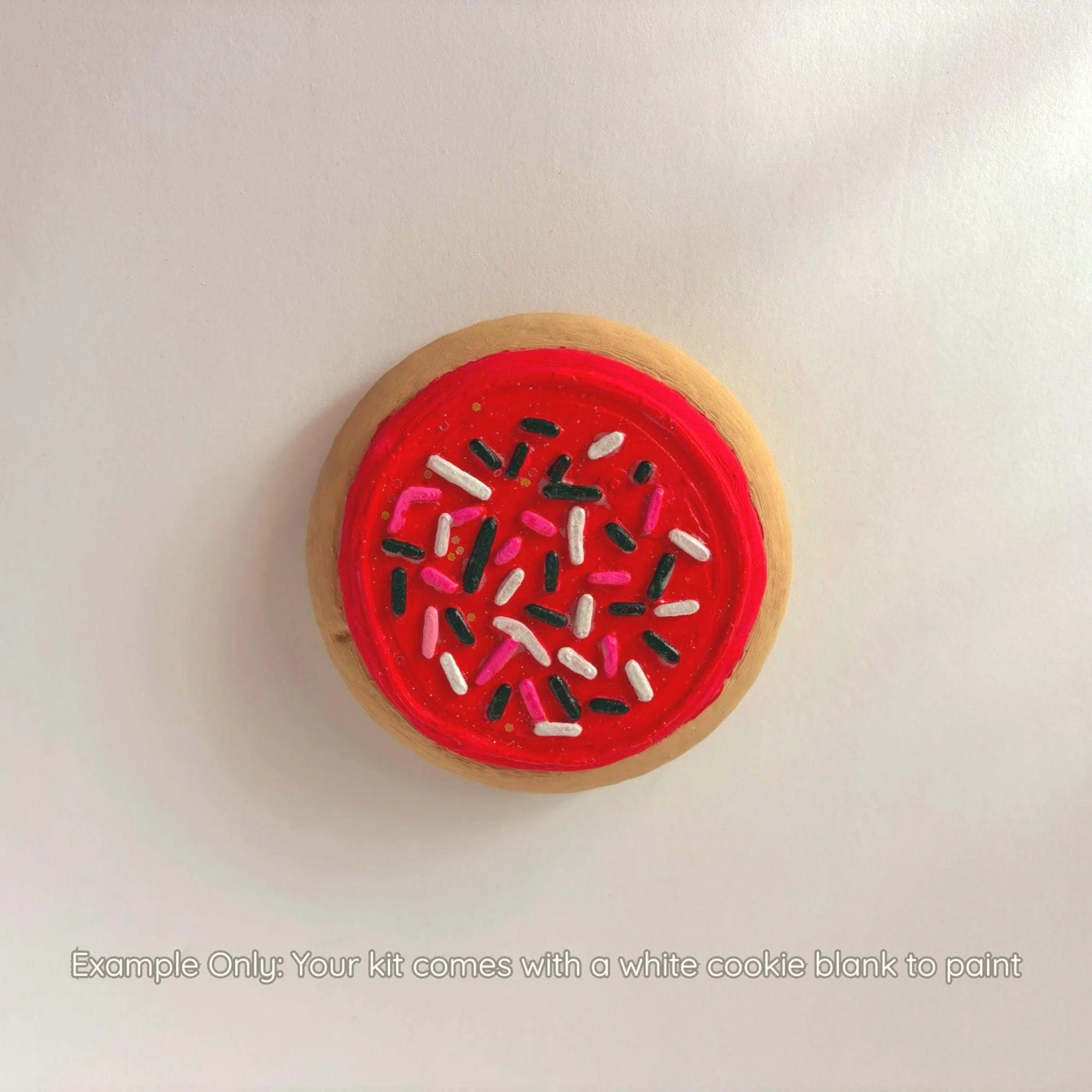 This Paint-Your-Own Christmas Cookie Kit includes everything kids and adults need to create a festive faux sugar cookie no baking, no mess, just pure holiday joy.