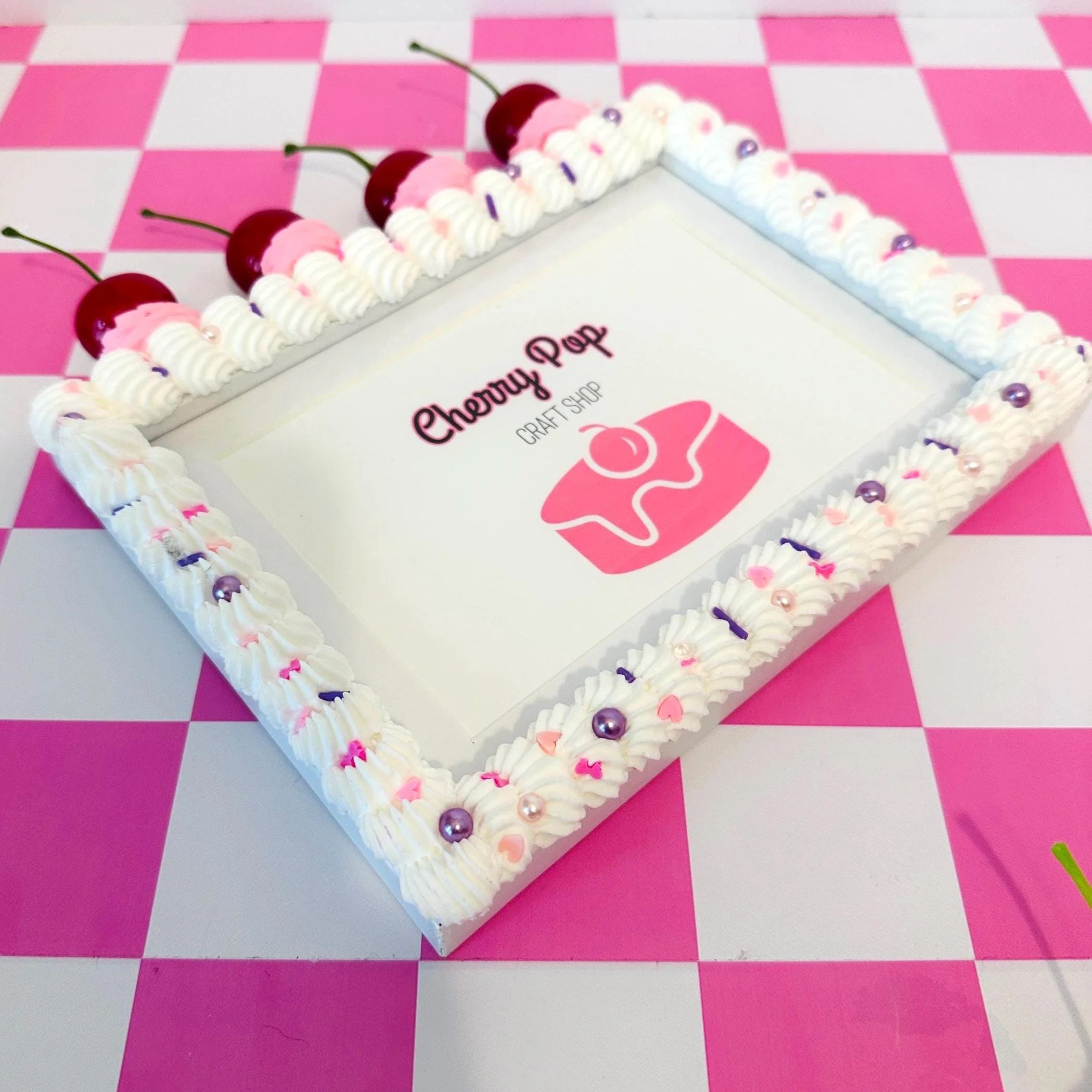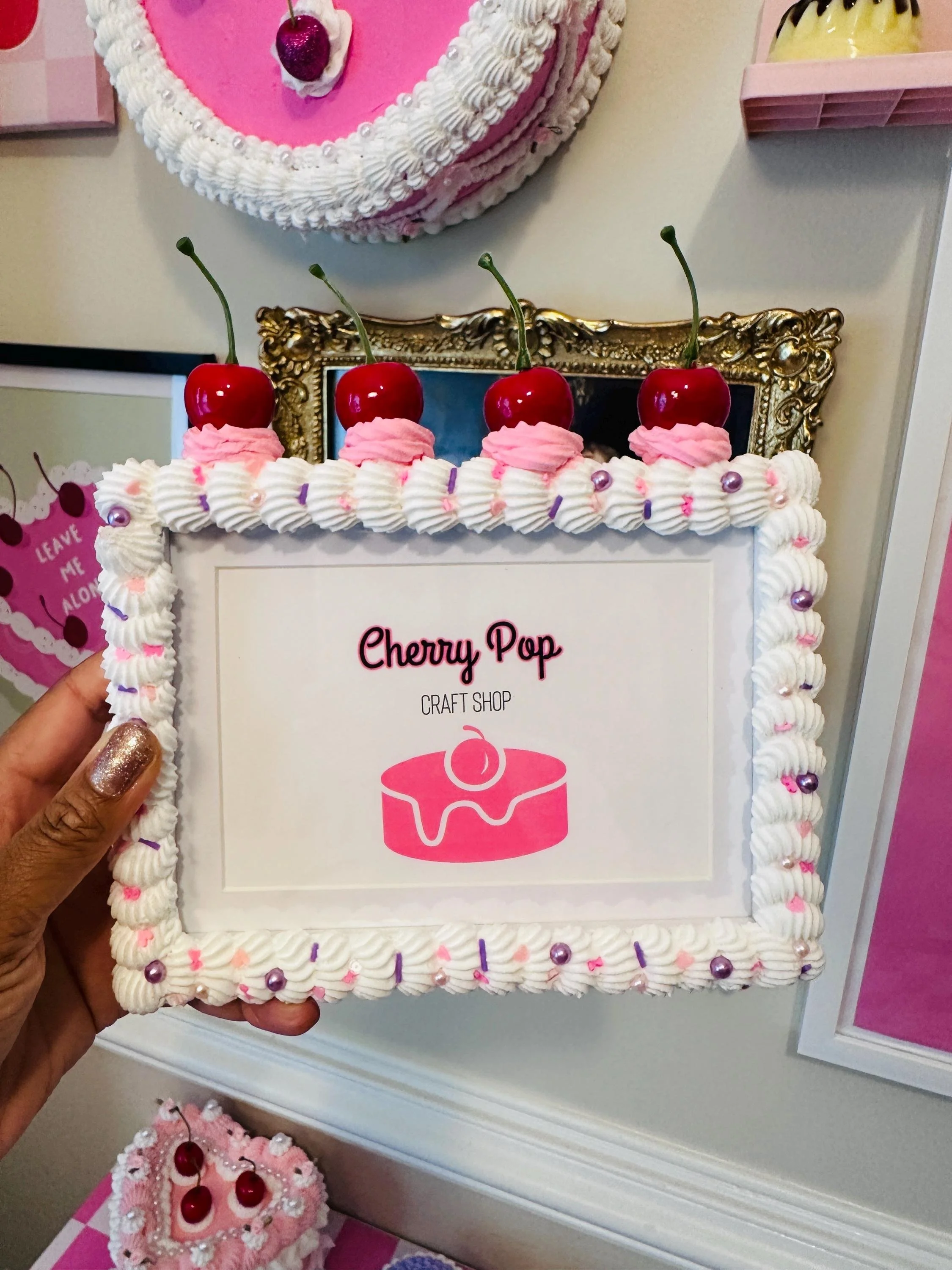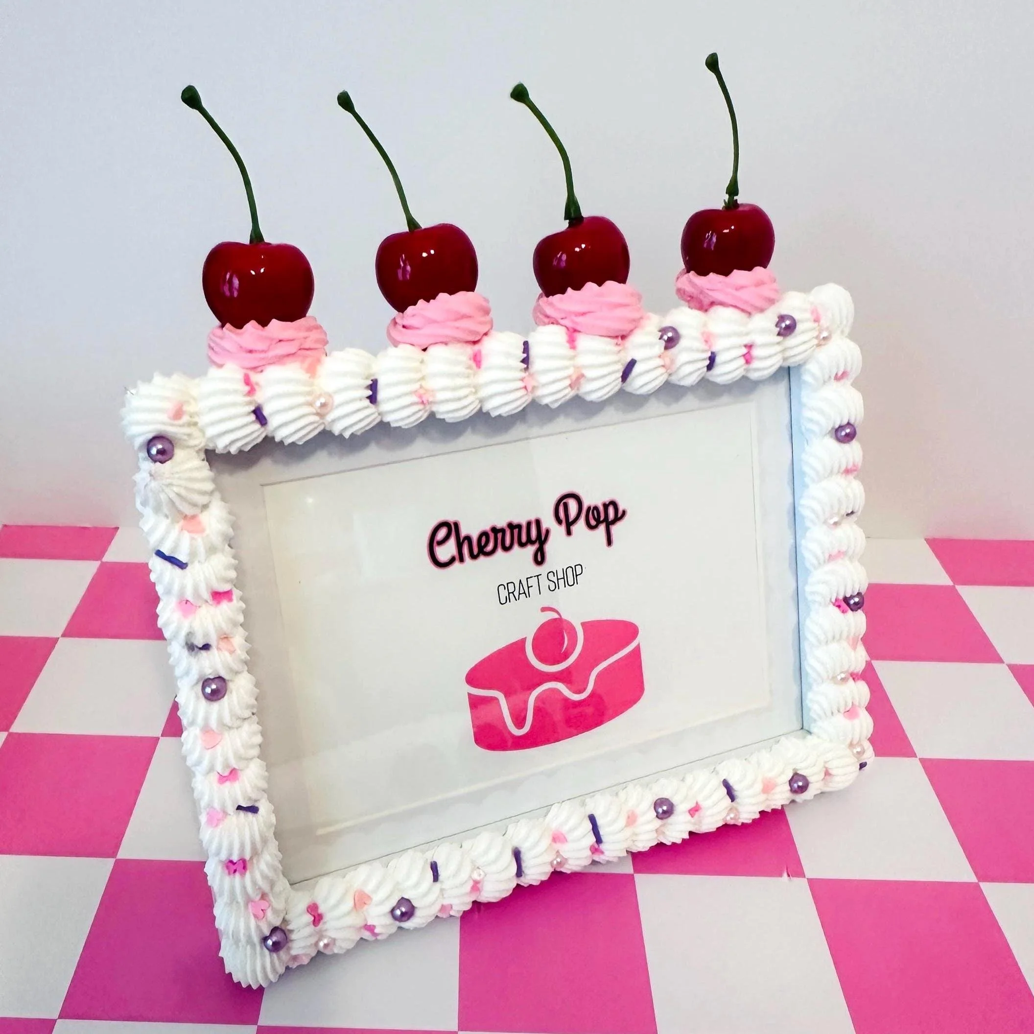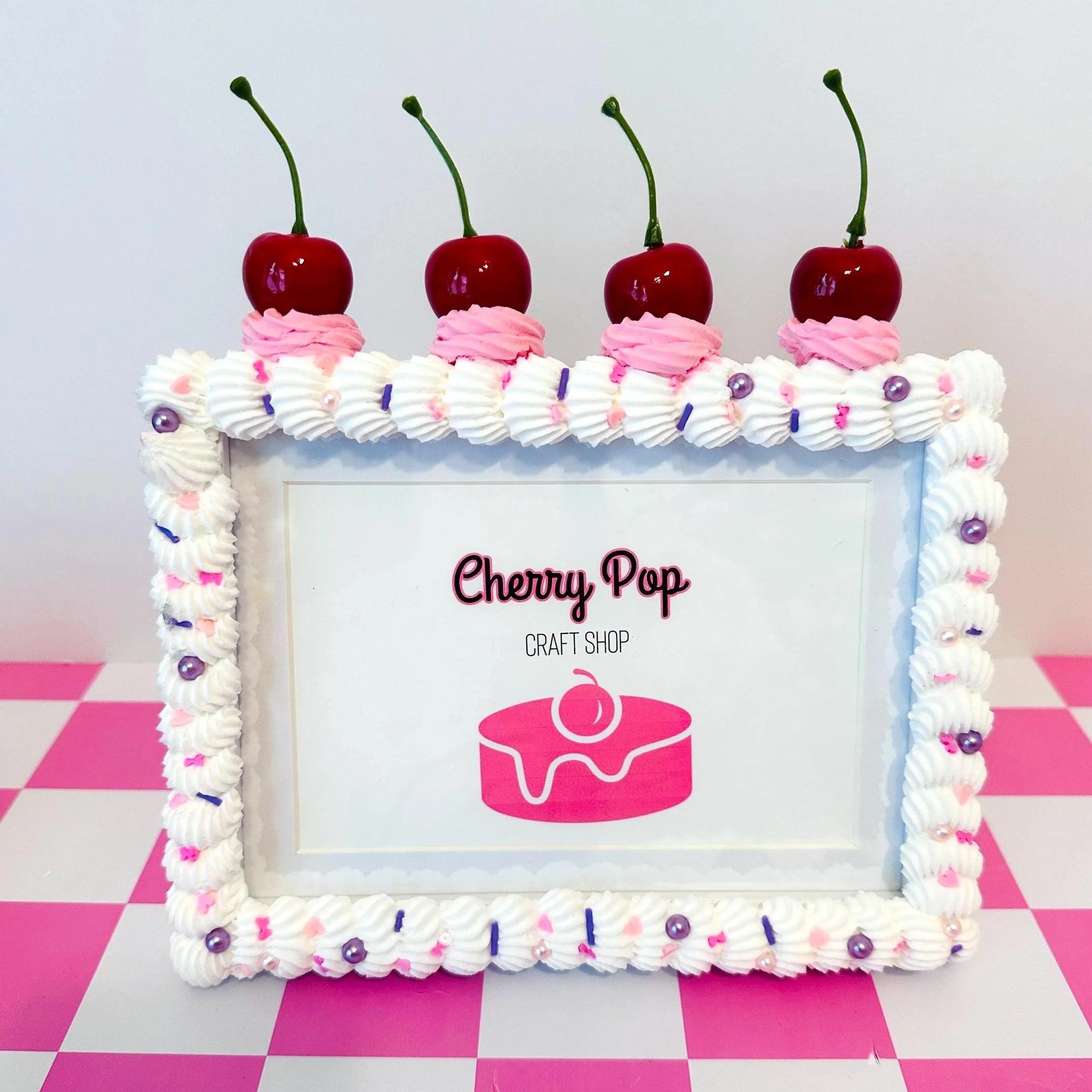 Decoden Picture Frame: Faux Cherry Cake Decor, Girly Photo Holder (4x6 or 5x7)