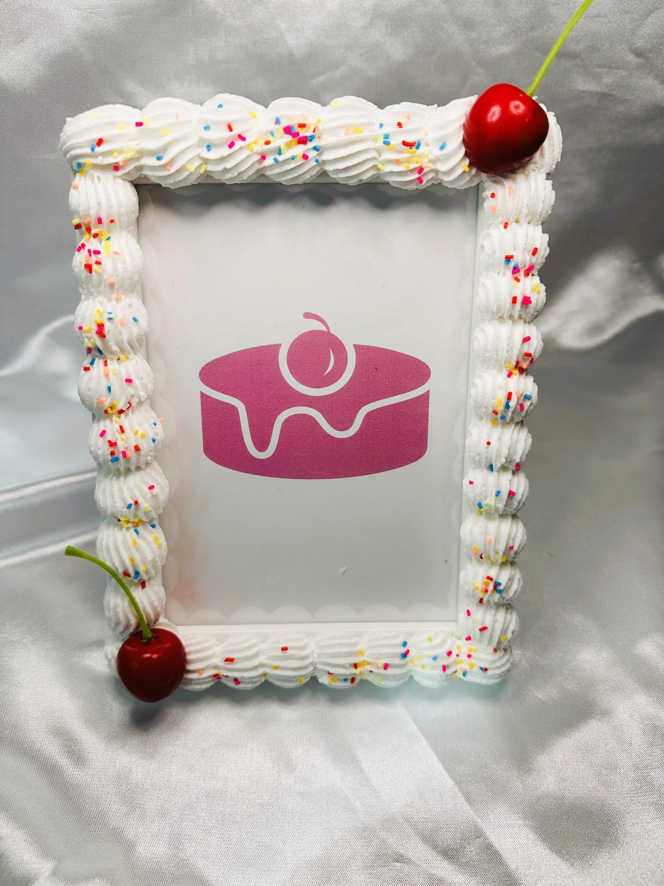 Fake Cake Photo Frame: Sprinkled Faux Icing, Cherry Decor