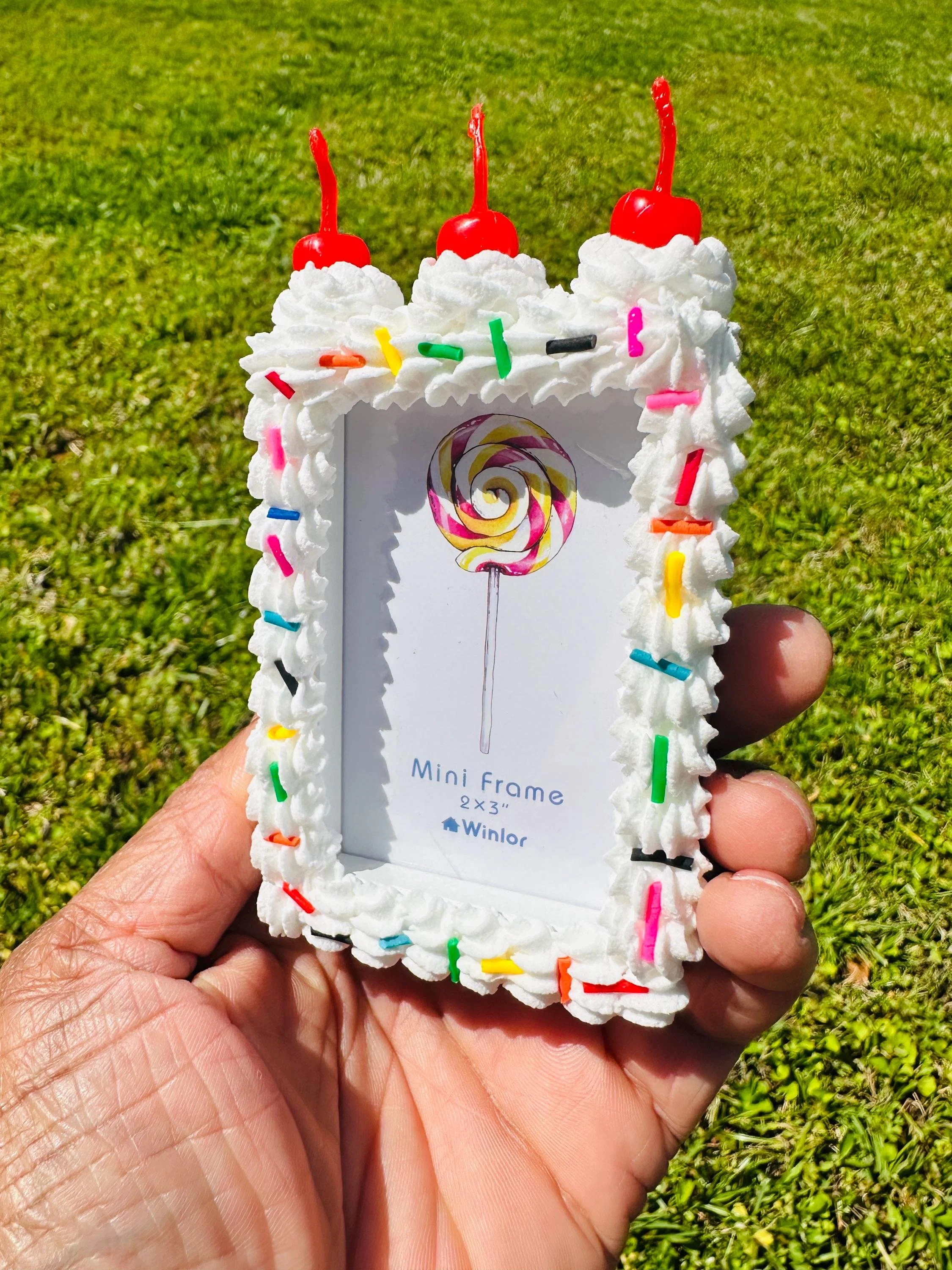 Store › Fake Cake Polaroid Frame Instax Photo Magnet - Free Photo Included Image 1 of 6 Image 2 of 6 Image 3 of 6 Image 4 of 6 Image 5 of 6 Image 6 of 6 Fake Cake Polaroid Frame Instax Photo Magnet - Free Photo Included from $14.99 Introducing our charming Fake Cake Magnetic Frame! This adorable piece features a stand for displaying your 2x3 instant photos. Print your favorite pictures and showcase them in style. The perfect blend of fun and function!Frames fit photos: 2"Lx3"W inches (look at photo with ruler)Frames size: 3.3"L x 2.3"W Frame Options:: Select Frame Options: Sprinkles+Cherry Only Sprinkles Quantity: Add To Cart Added! Introducing our charming Fake Cake Magnetic Frame! This adorable piece features a stand for displaying your 2x3 instant photos. Print your favorite pictures and showcase them in style. The perfect blend of fun and function!Frames fit photos: 2"Lx3"W inches (look at photo with ruler)Frames size: 3.3"L x 2.3"W