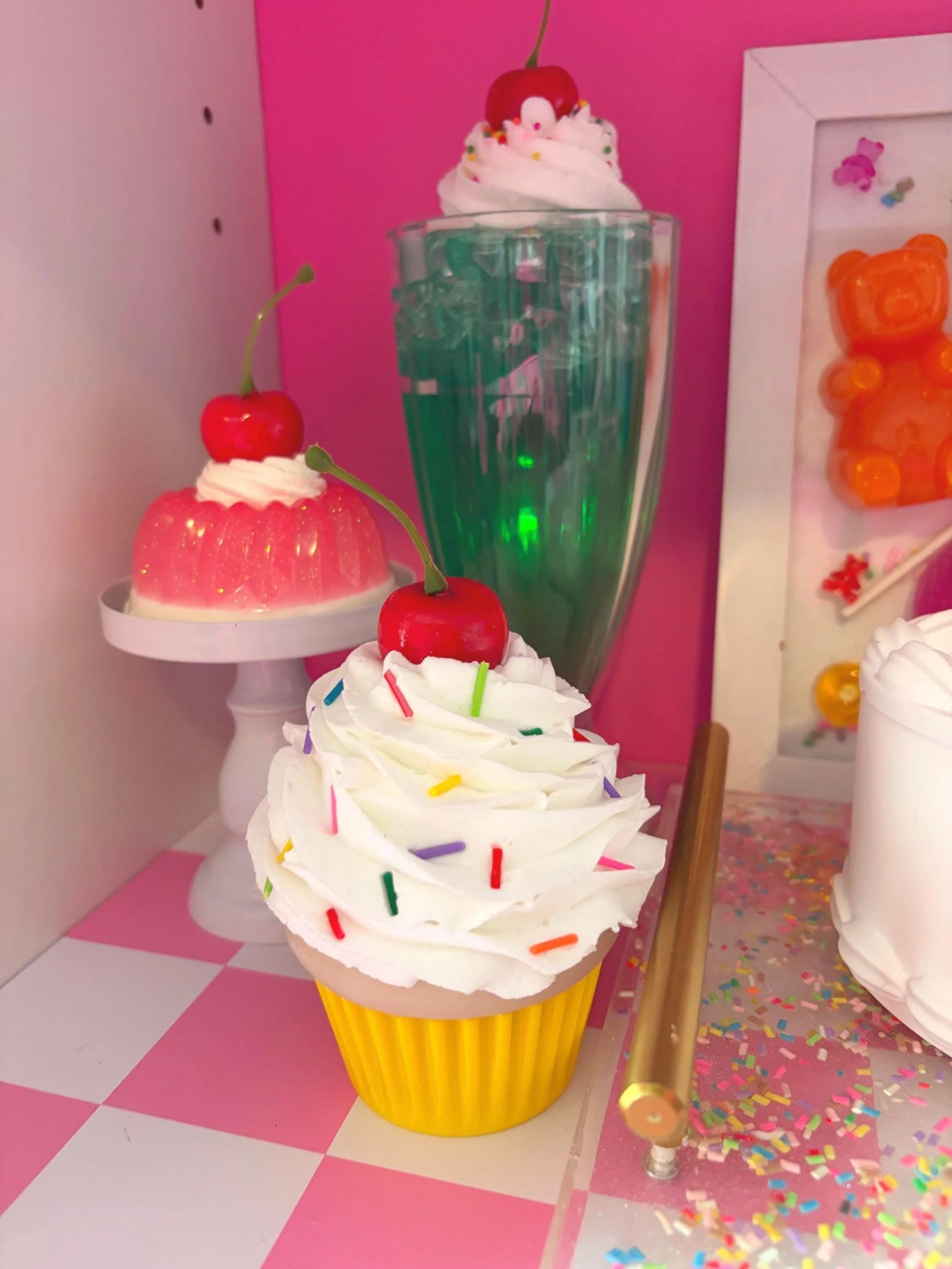 Store › Fake Cupcake Screw Top Lid Jar with Cherry or Sprinkles Image 1 of 12 Image 2 of 12 Image 3 of 12 Image 4 of 12 Image 5 of 12 Image 6 of 12 Image 7 of 12 Image 8 of 12 Image 9 of 12 Image 10 of 12 Image 11 of 12 Image 12 of 12 Fake Cupcake Screw Top Lid Jar with Cherry or Sprinkles from $23.99 This fake cupcake isn’t just decoration it’s a secret storage jar with a hidden screw-top base. Perfect for storing: Jewelry Hair ties Money Lip balm Medication Small keepsakes It looks adorable on: Vanity trays Desks Bookshelves Lockers Each cupcake is piped by hand with soft “whipped cream” texture and topped with a glossy cherry. Size: approx. 5"–7" tall depending on frosting style Material: 3D printed PLA base / hand-piped sculpted topper Finish: Sealed, durable, lightweight Care: Wipe clean only Keep away from water Not intended for food or edible storage Avoid heat or direct sunlight for long periods Why You’ll Love It ✔ Secret stash that looks like décor ✔ Adds instant cuteness to any space ✔ A perfect self-care treat or gift Toppings:: Select Toppings: Cherry & Sprinkles Just Cherry Primary color: Select Primary color Red Orange Yellow Blue Green Purple Add To Cart Added! This fake cupcake isn’t just decoration it’s a secret storage jar with a hidden screw-top base. Perfect for storing: Jewelry Hair ties Money Lip balm Medication Small keepsakes It looks adorable on: Vanity trays Desks Bookshelves Lockers Each cupcake is piped by hand with soft “whipped cream” texture and topped with a glossy cherry. Size: approx. 5"–7" tall depending on frosting style Material: 3D printed PLA base / hand-piped sculpted topper Finish: Sealed, durable, lightweight Care: Wipe clean only Keep away from water Not intended for food or edible storage Avoid heat or direct sunlight for long periods Why You’ll Love It ✔ Secret stash that looks like décor ✔ Adds instant cuteness to any space ✔ A perfect self-care treat or gift