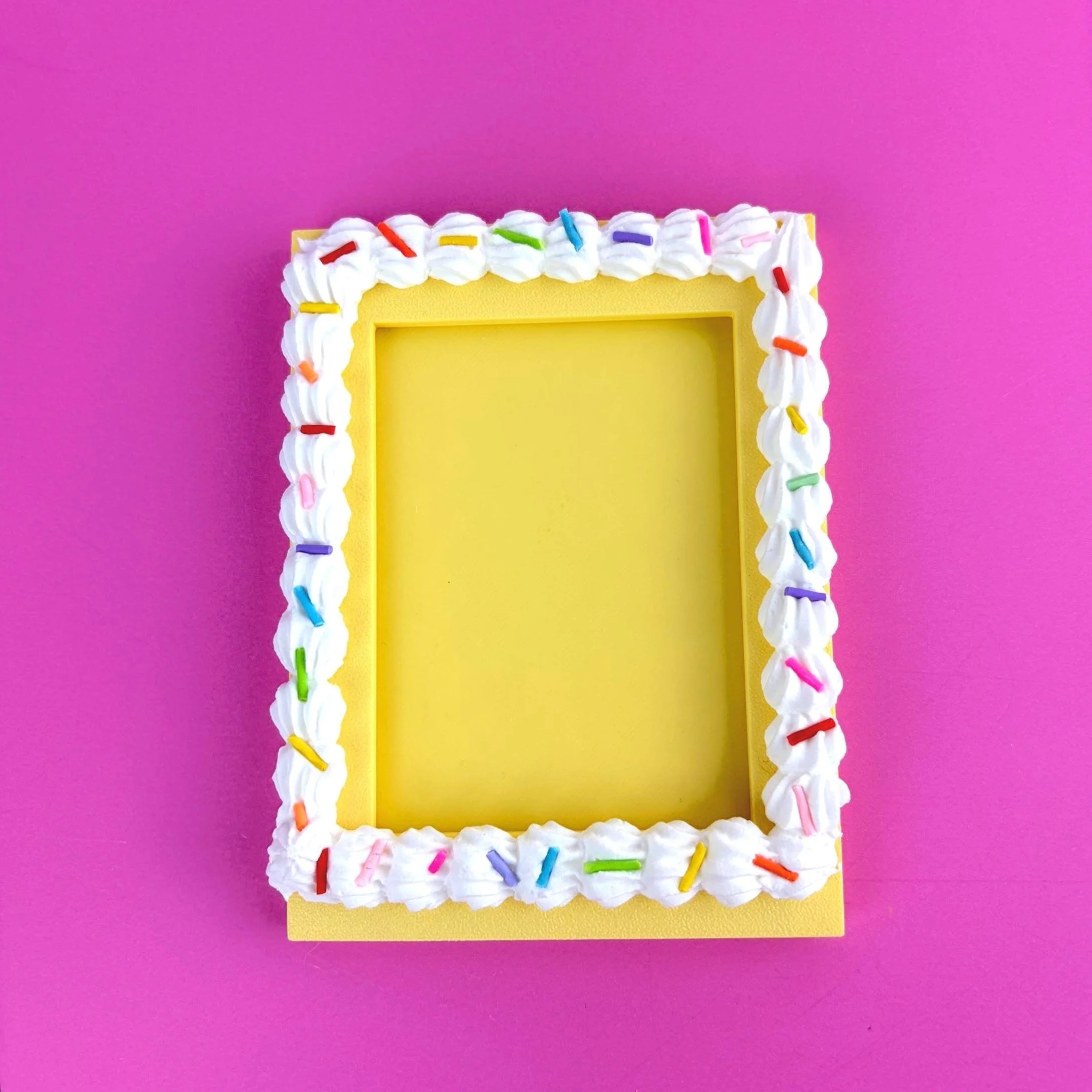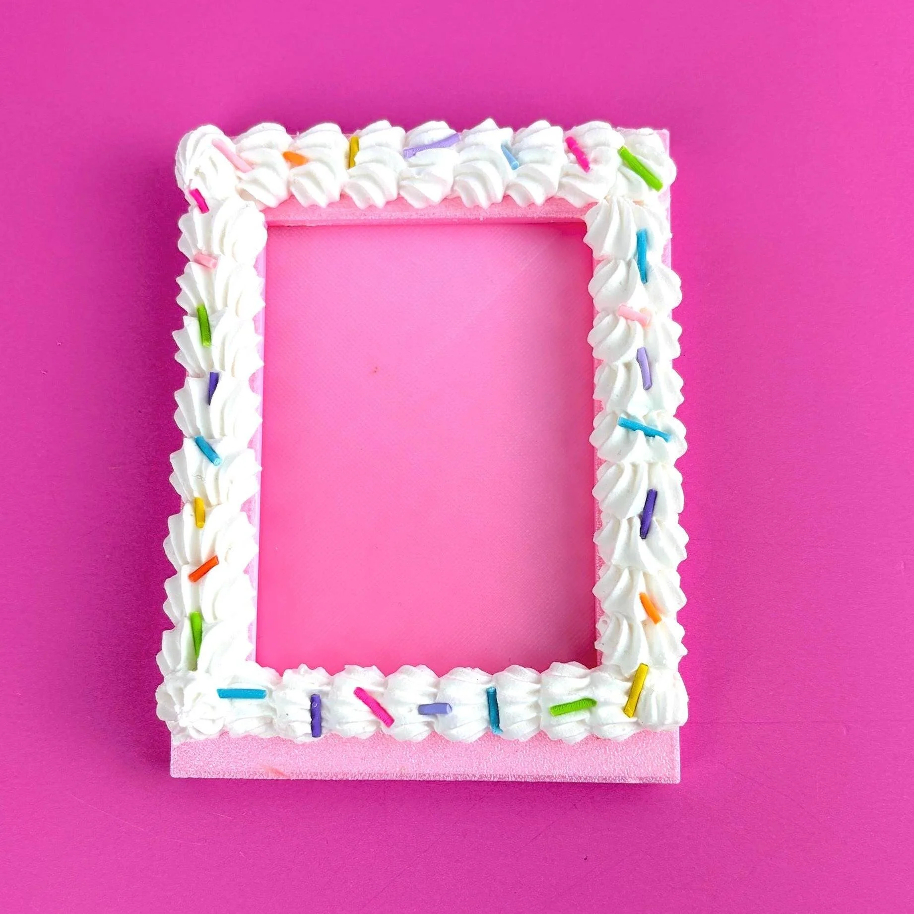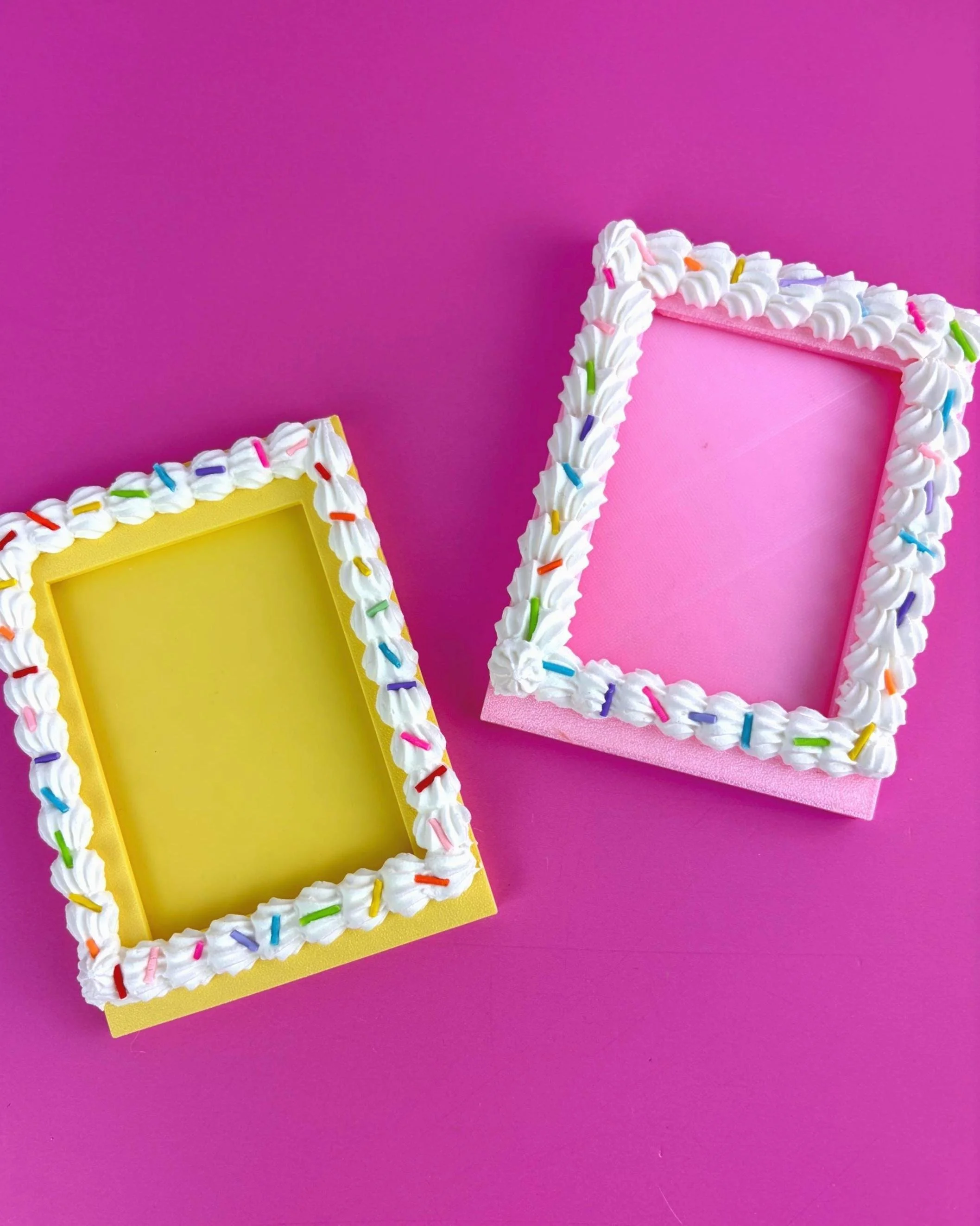 Each frame is 3D printed and hand-decorated with lightweight faux icing for a realistic “fake cake” look. No two pieces are exactly alike, making each display uniquely yours.