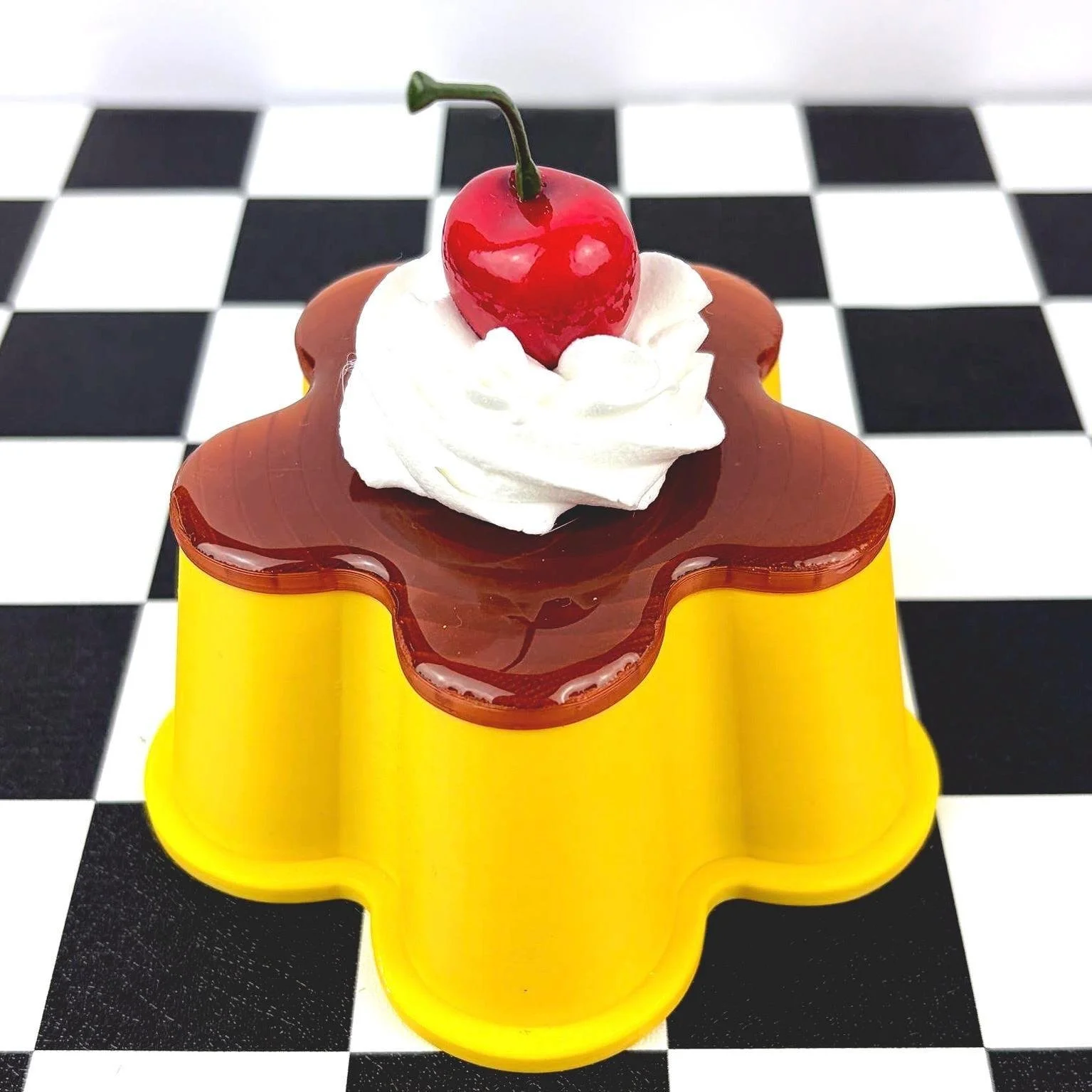 Flan Pudding Trinket Container with Faux Cherry & Whipped Cream Lid