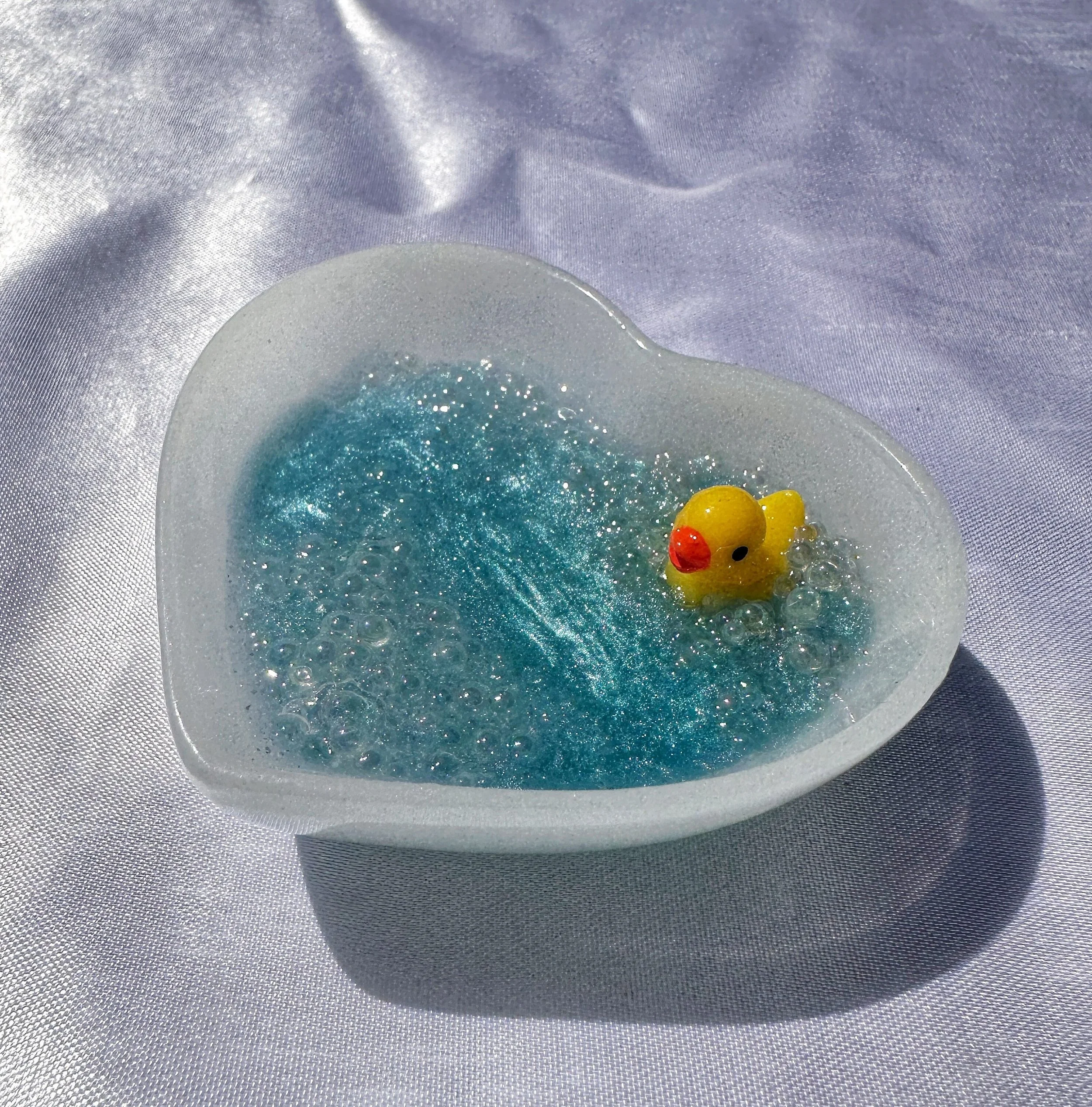 Handmade Heart Shaped Dish with Rubber Duck in Bubble Bath