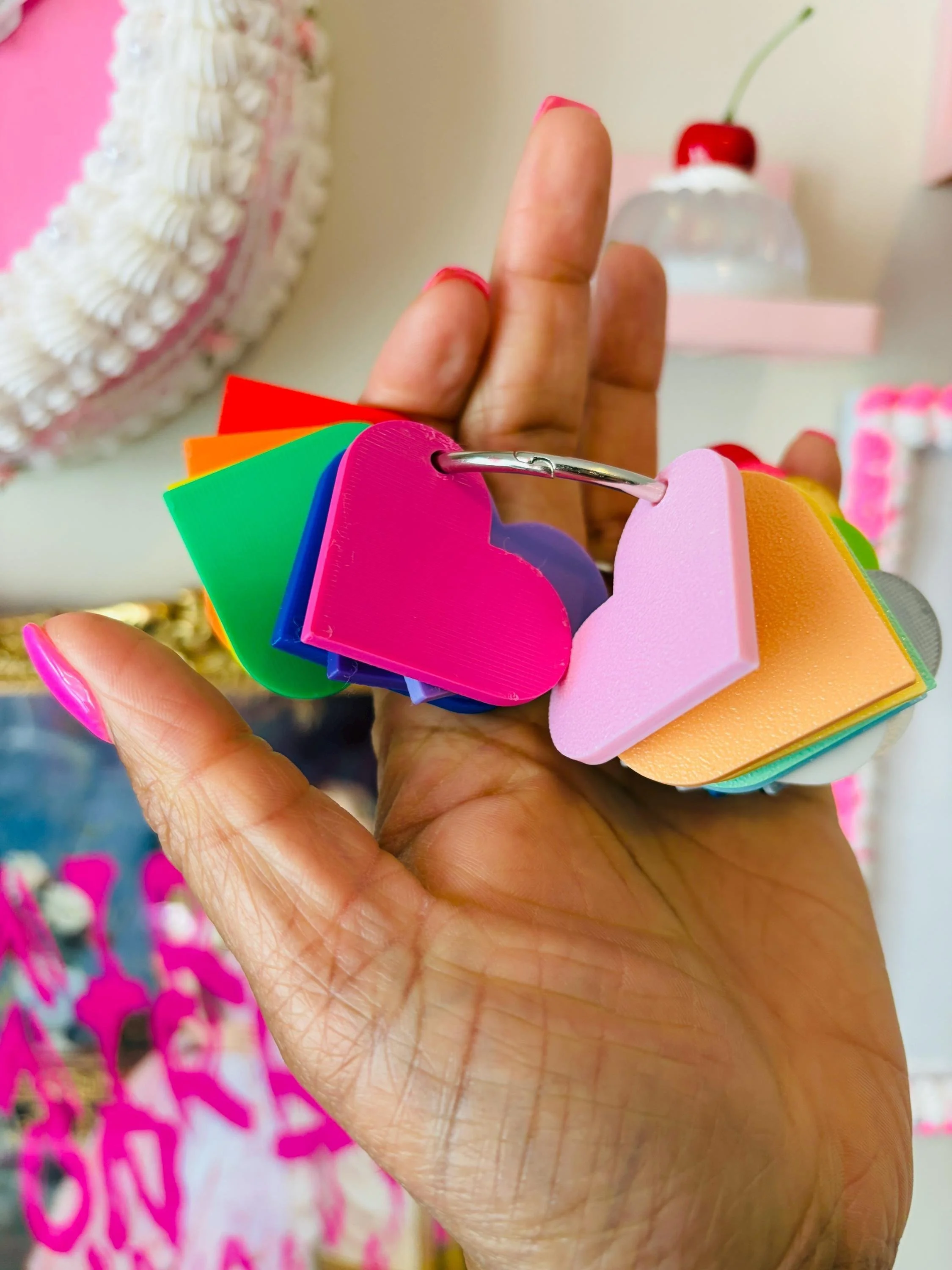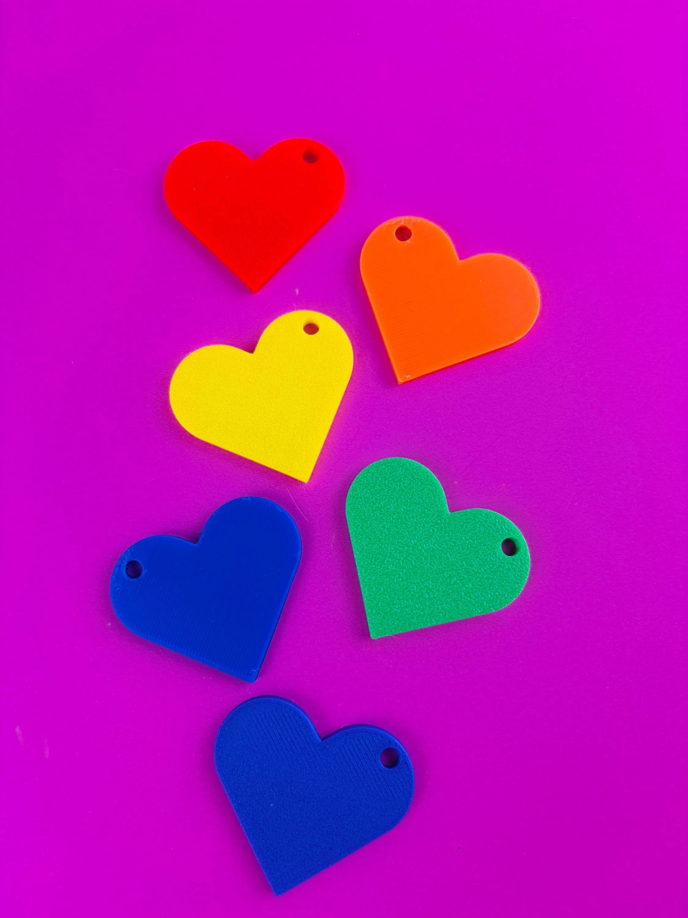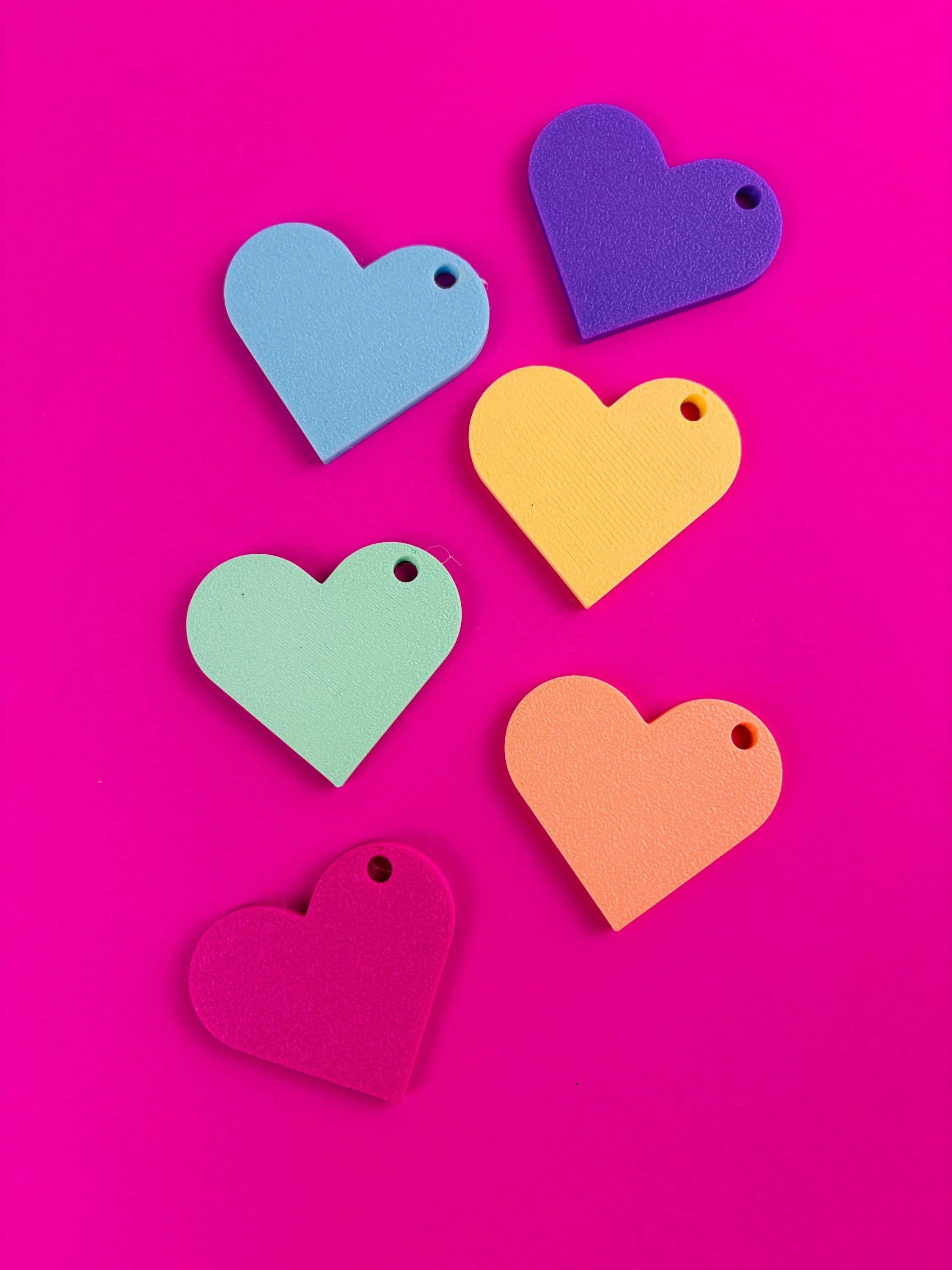 By printing one heart for each filament you own, you can build a physical color library that makes it easy to compare colors, organize materials, and show customers options for custom prints.