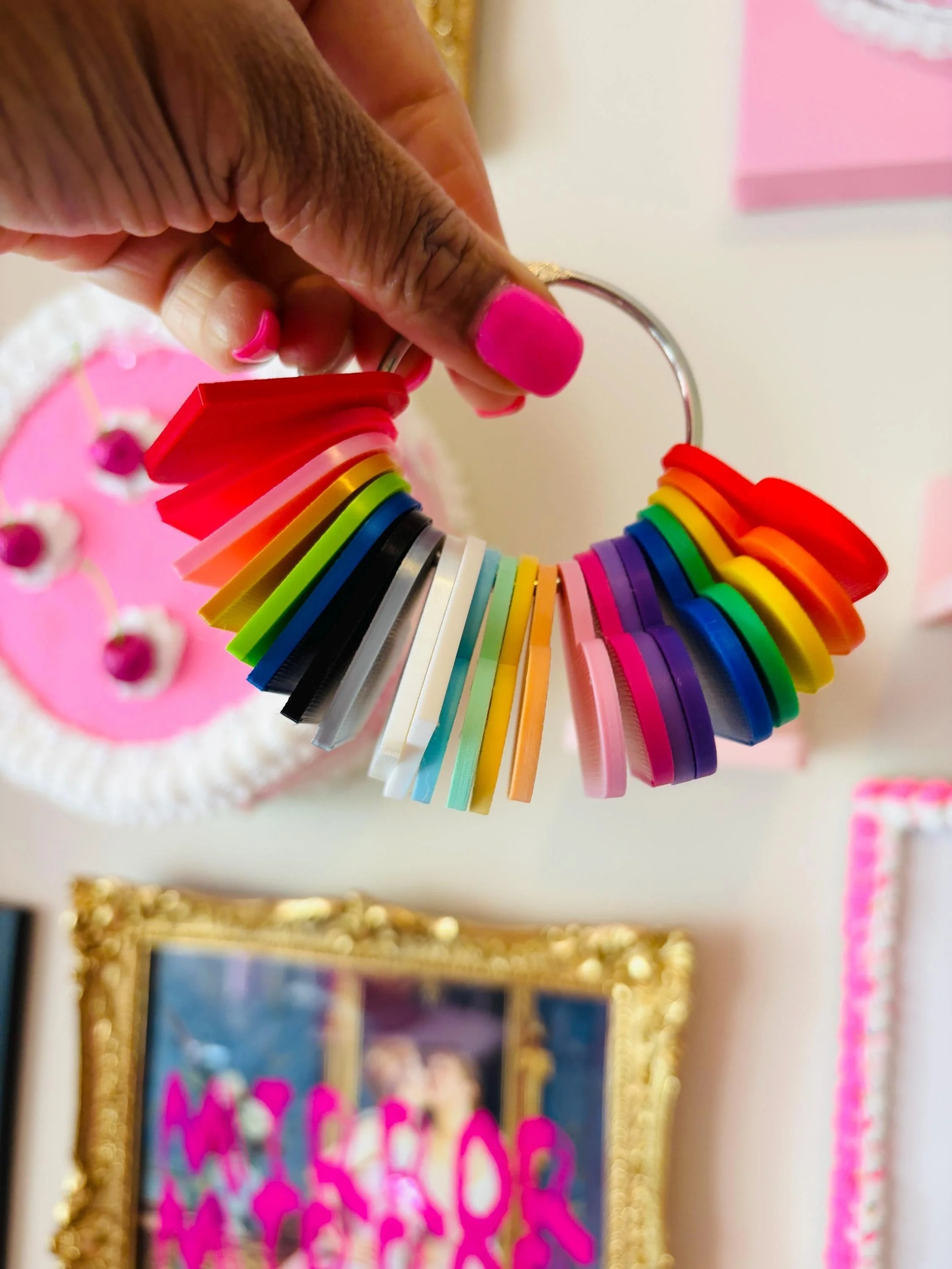 This digital download includes the STL file to print your own swatches using your actual filament colors, plus a Canva template to organize and label your color collection.