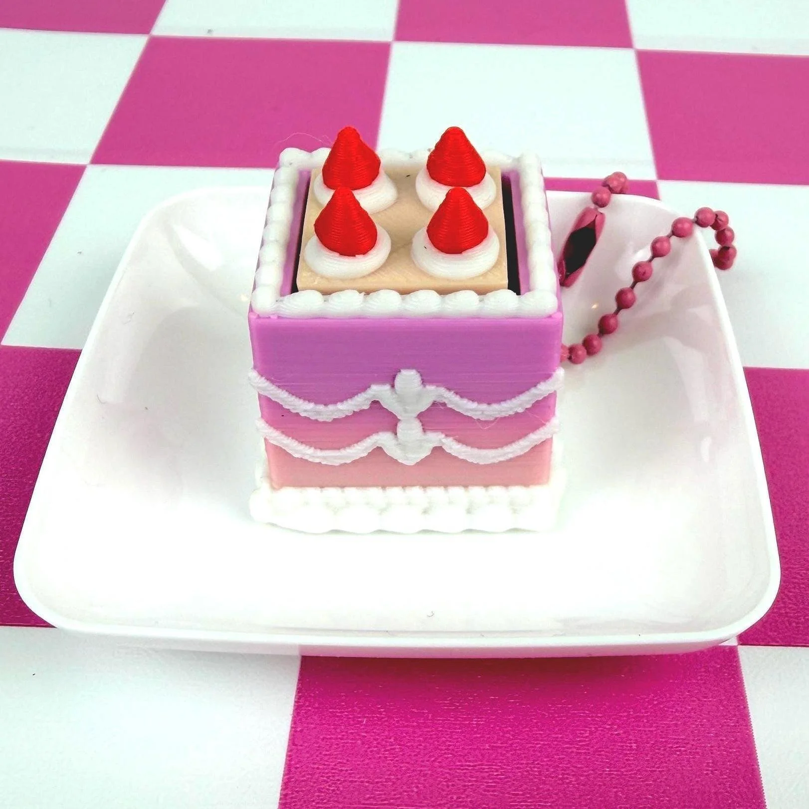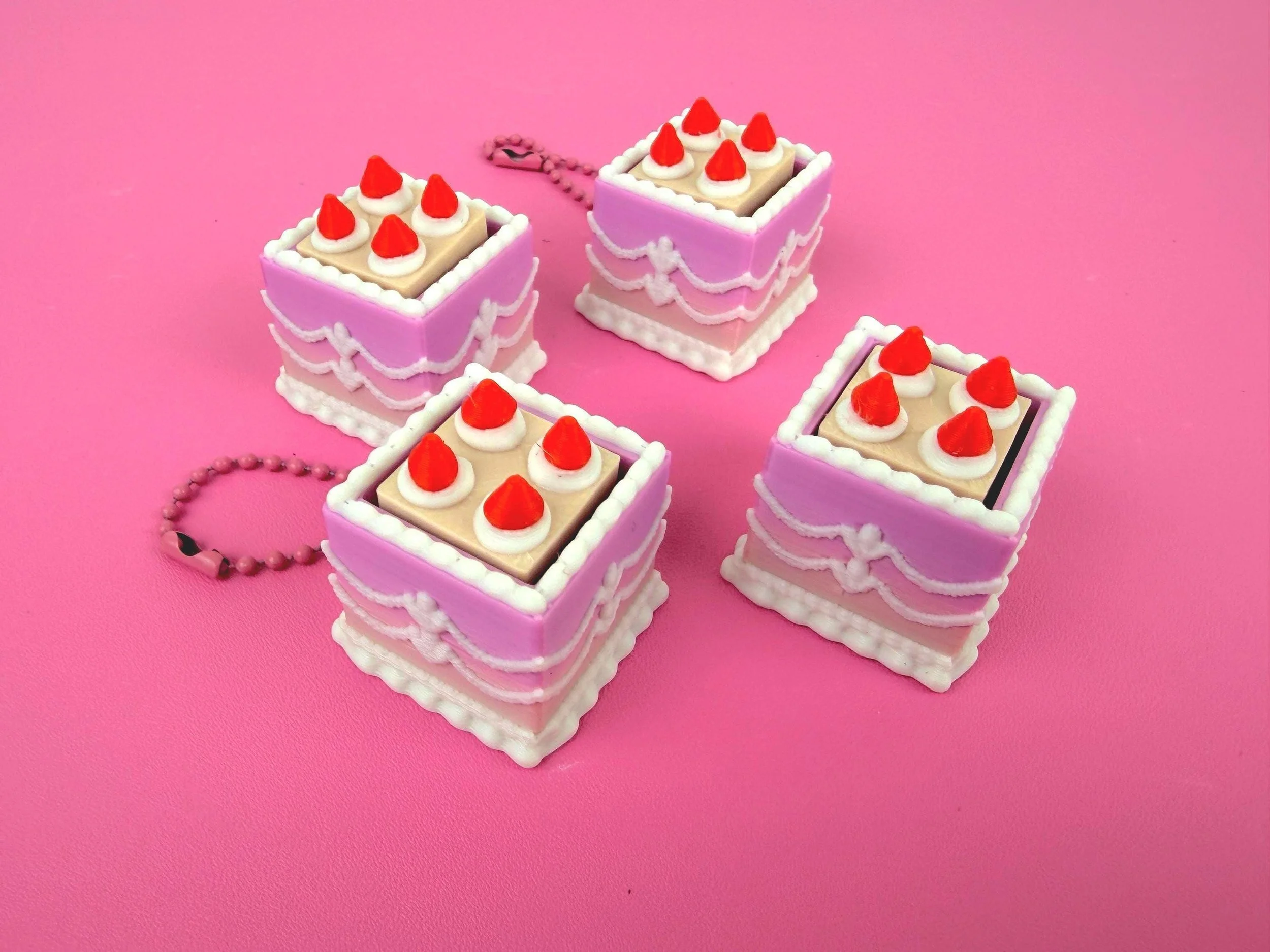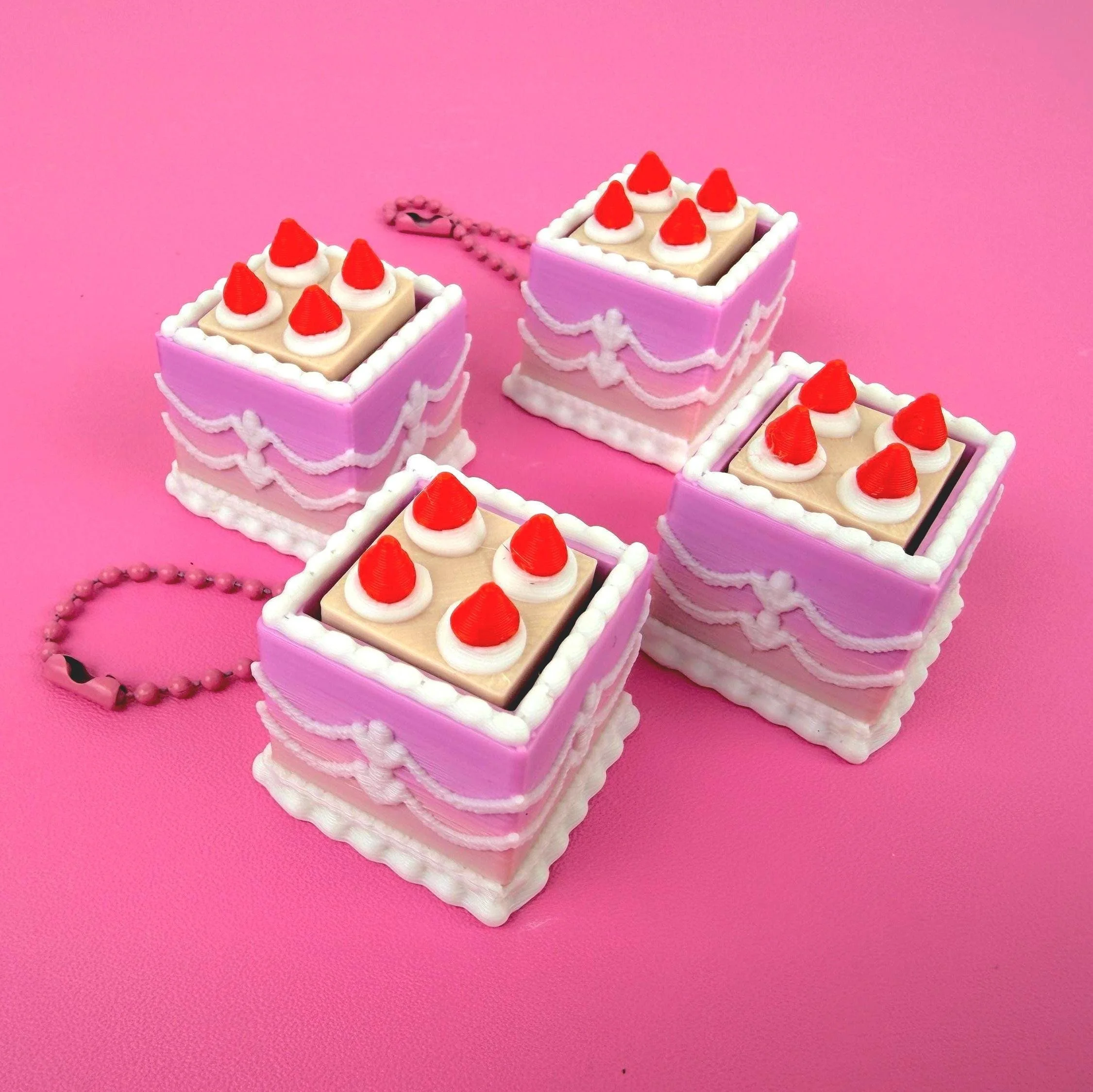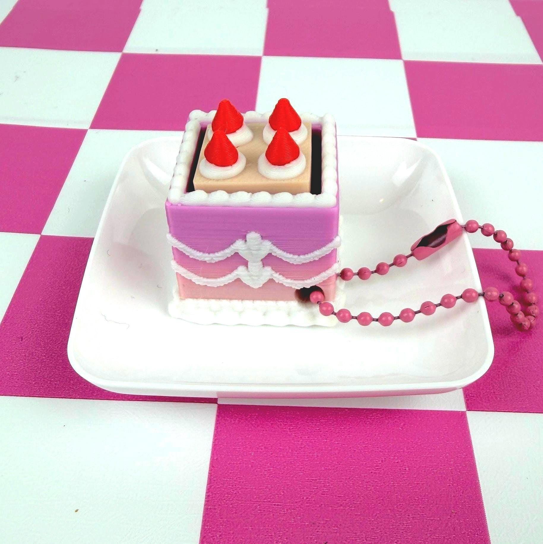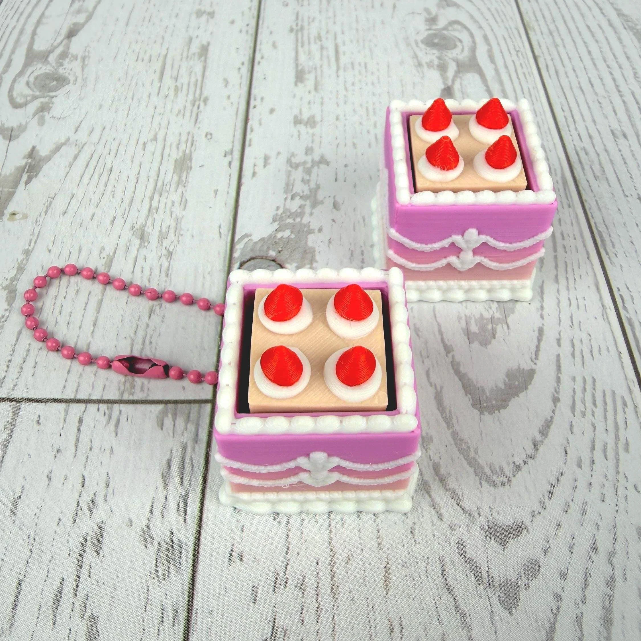 Mini Square Fake Cake Keychain with Strawberries | Mechanical Fidget Clicker