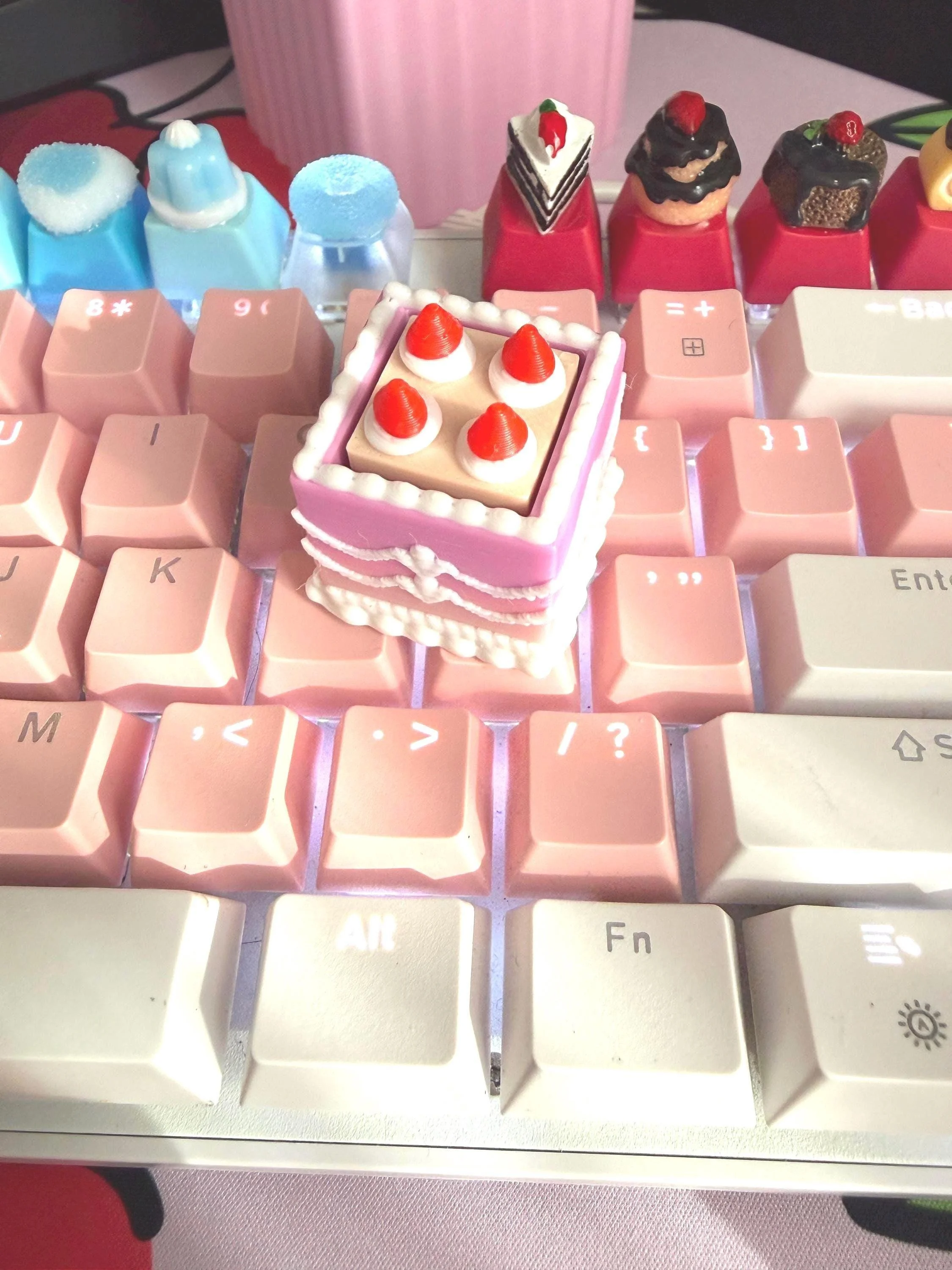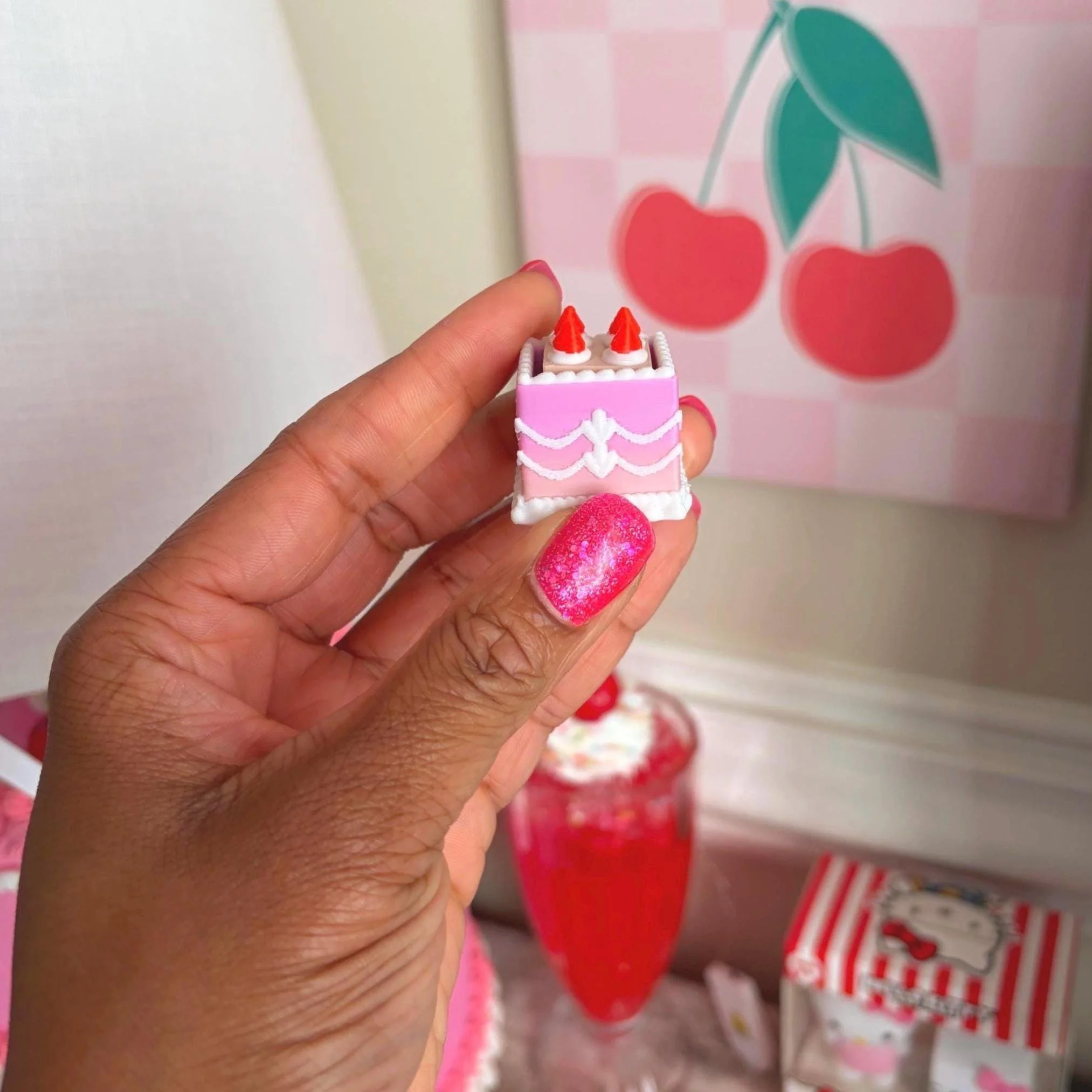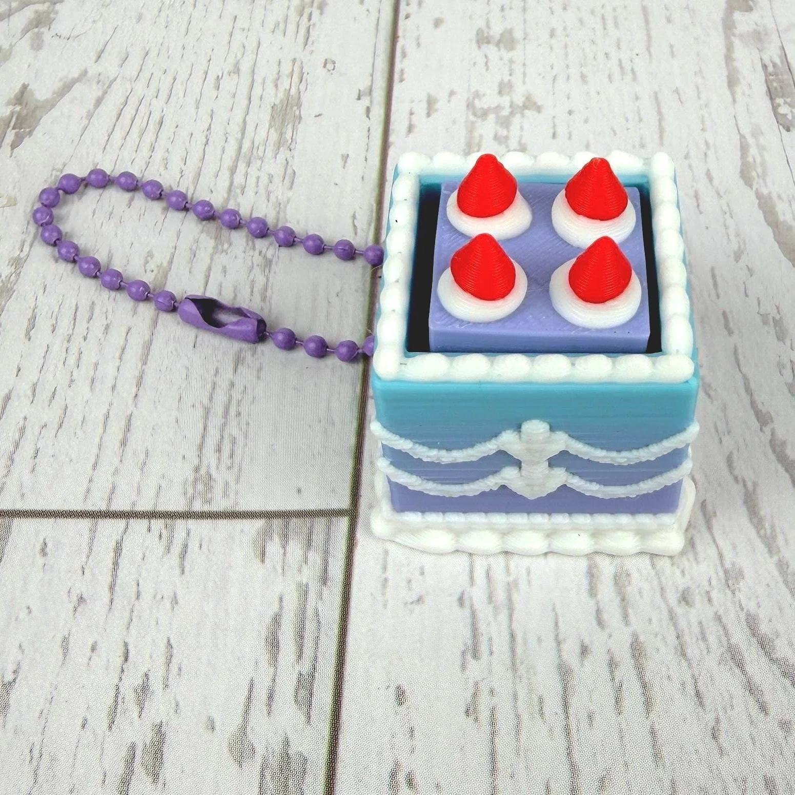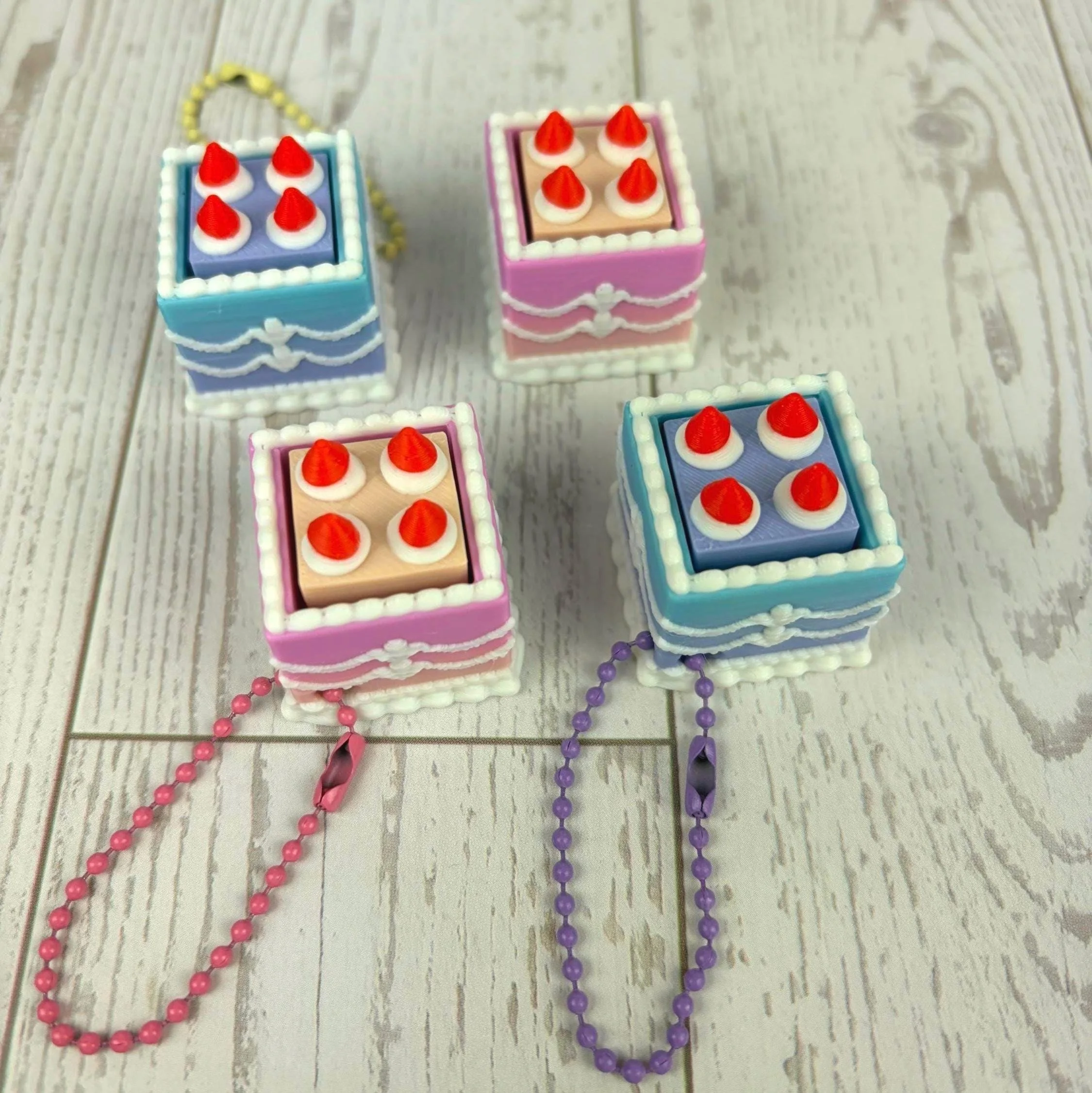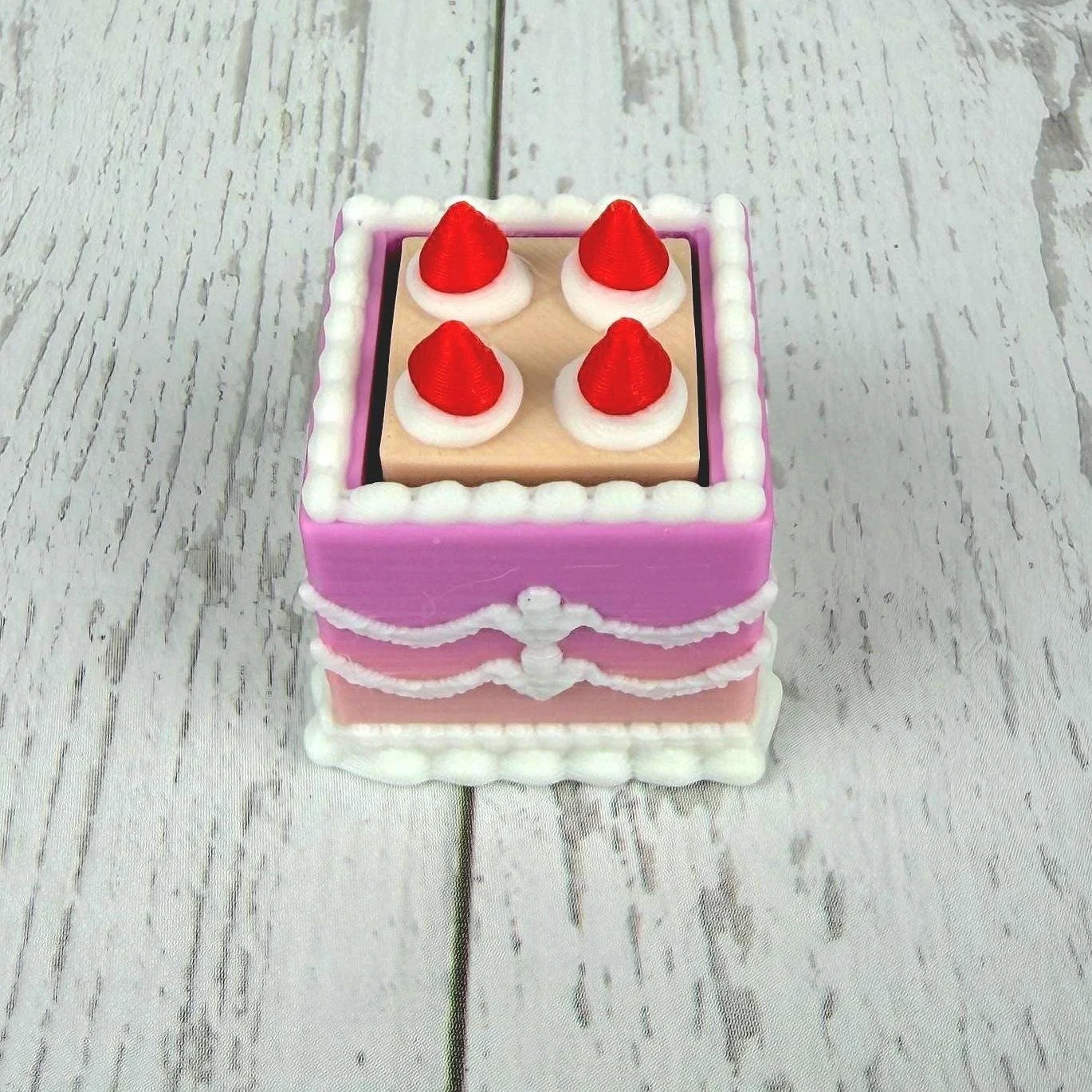 Mini Square Fake Cake Keychain with Strawberries | Mechanical Fidget Clicker