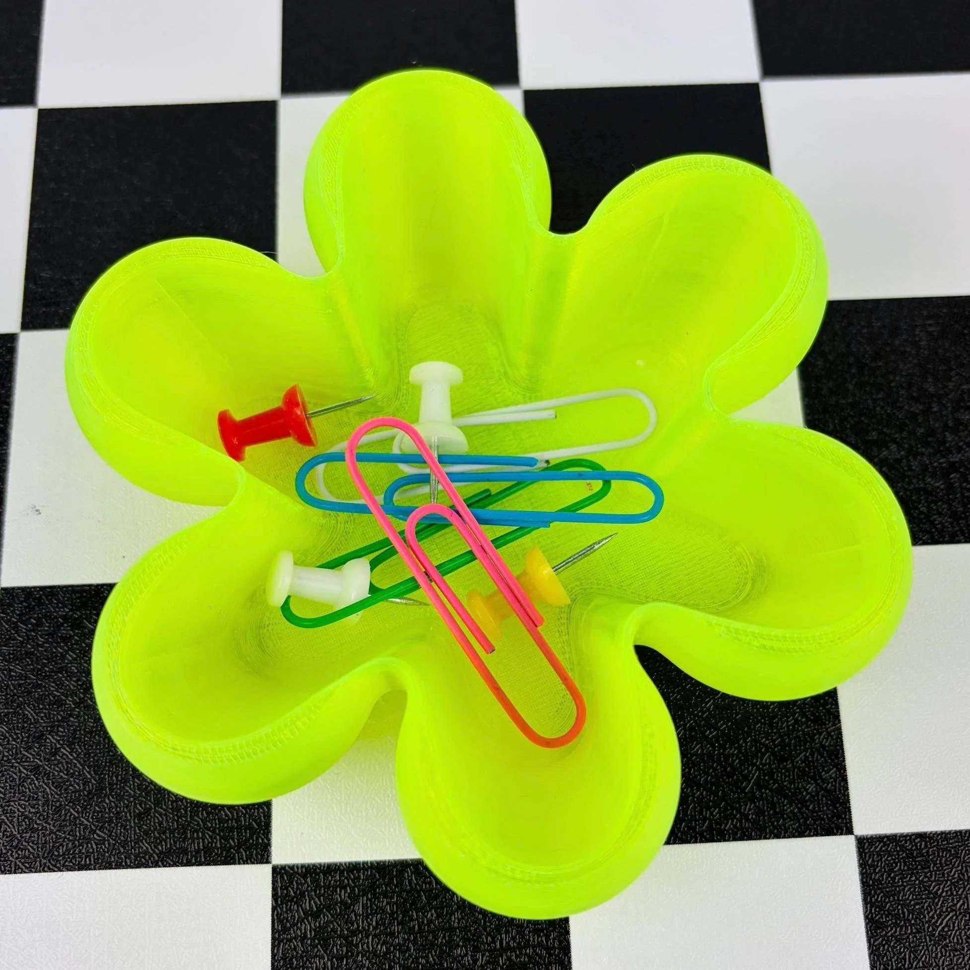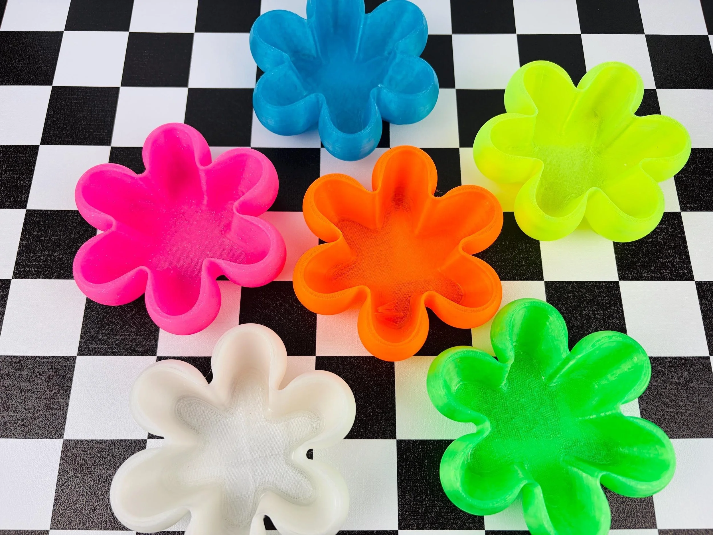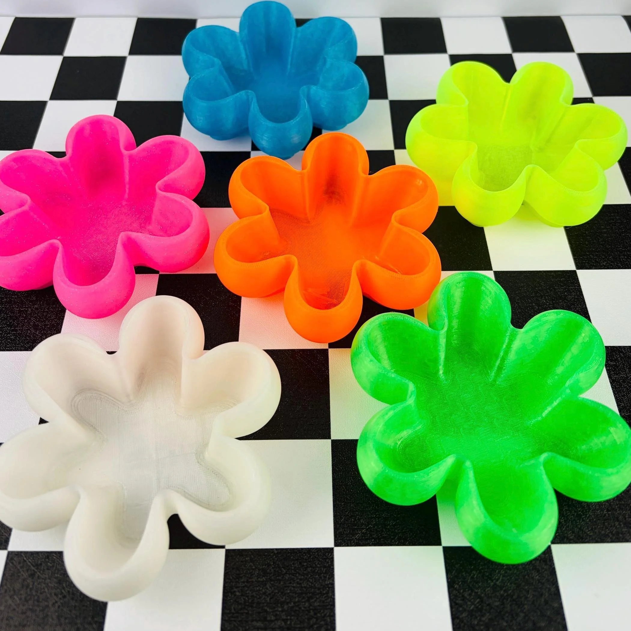 Neon Flower Trinket Dish Set – 3D Printed Y2K Desk Organizer