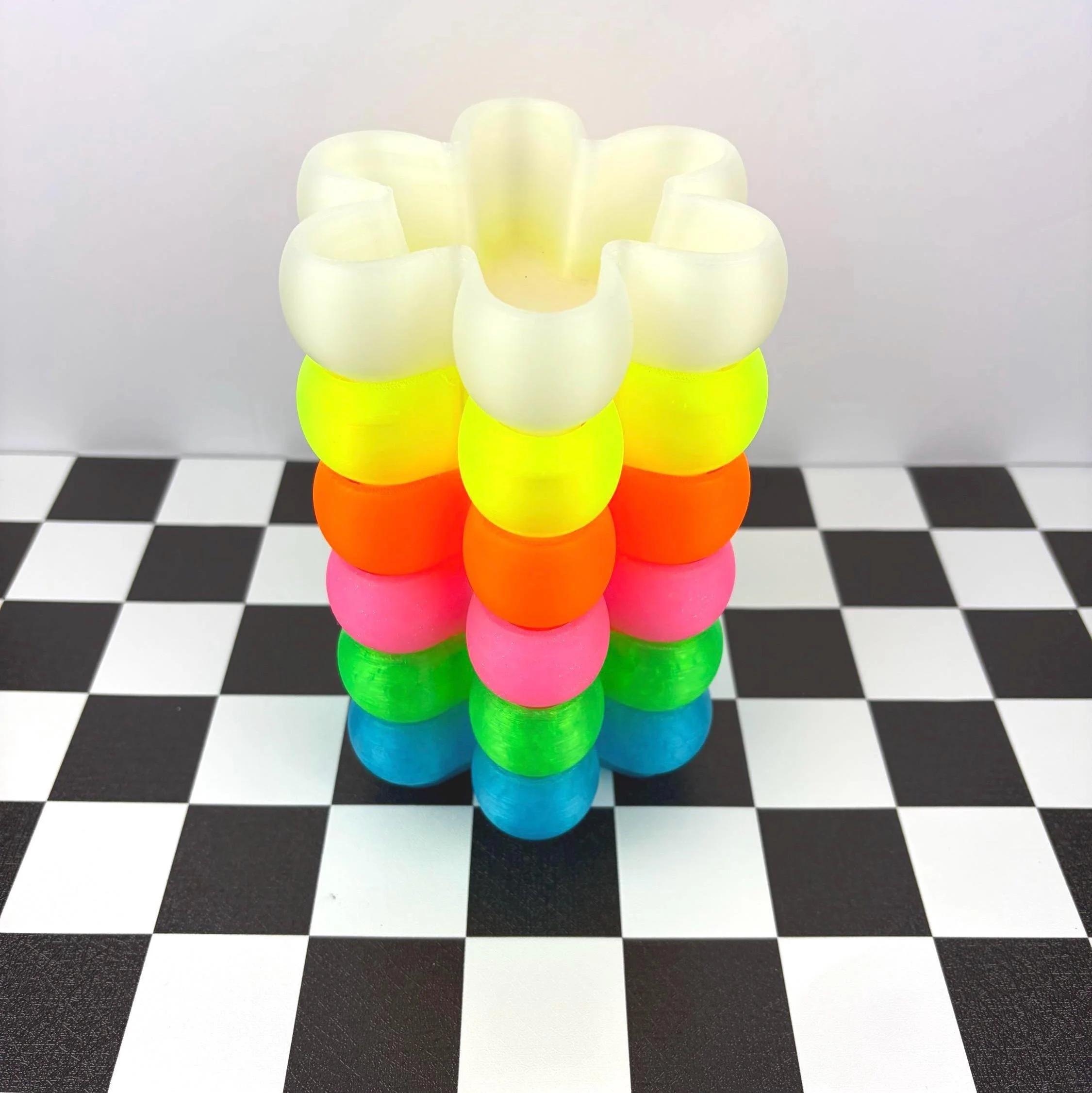 These stackable flower trinket dishes are the perfect mix of retro style and modern function. 3D printed in vibrant neon PLA, they’re ideal for organizing jewelry, keys, coins, or small desk items and they add a bold pop of color to any space!