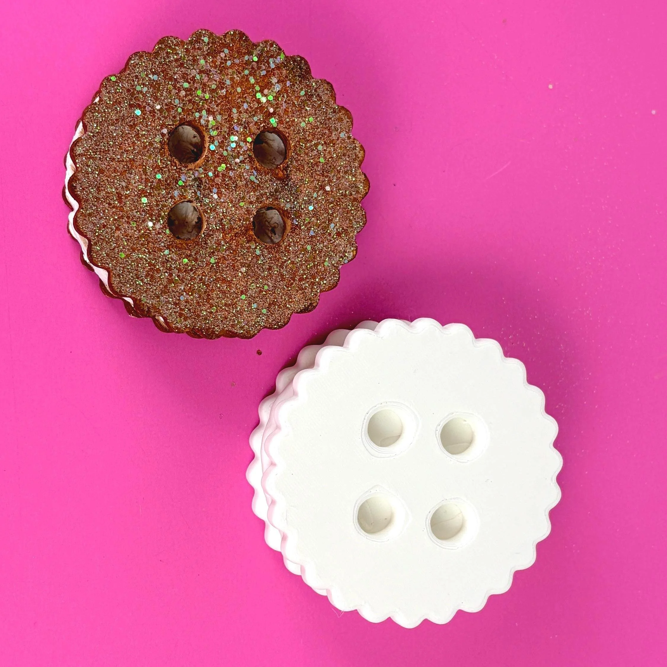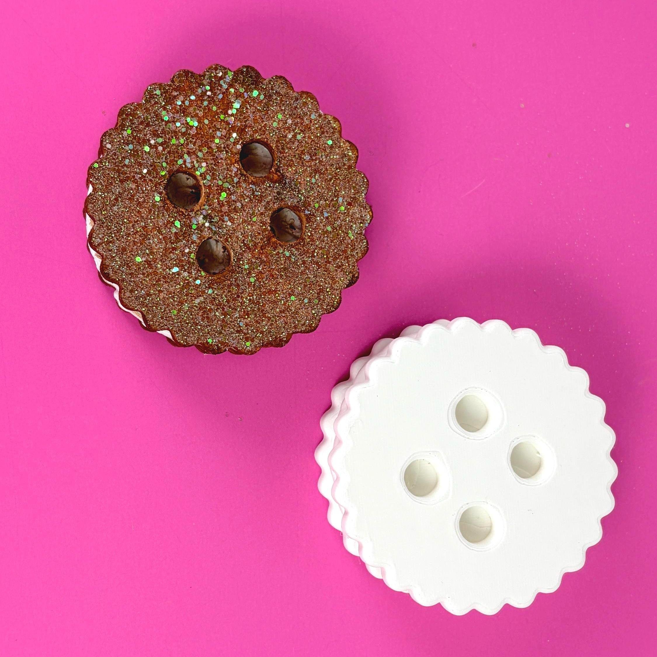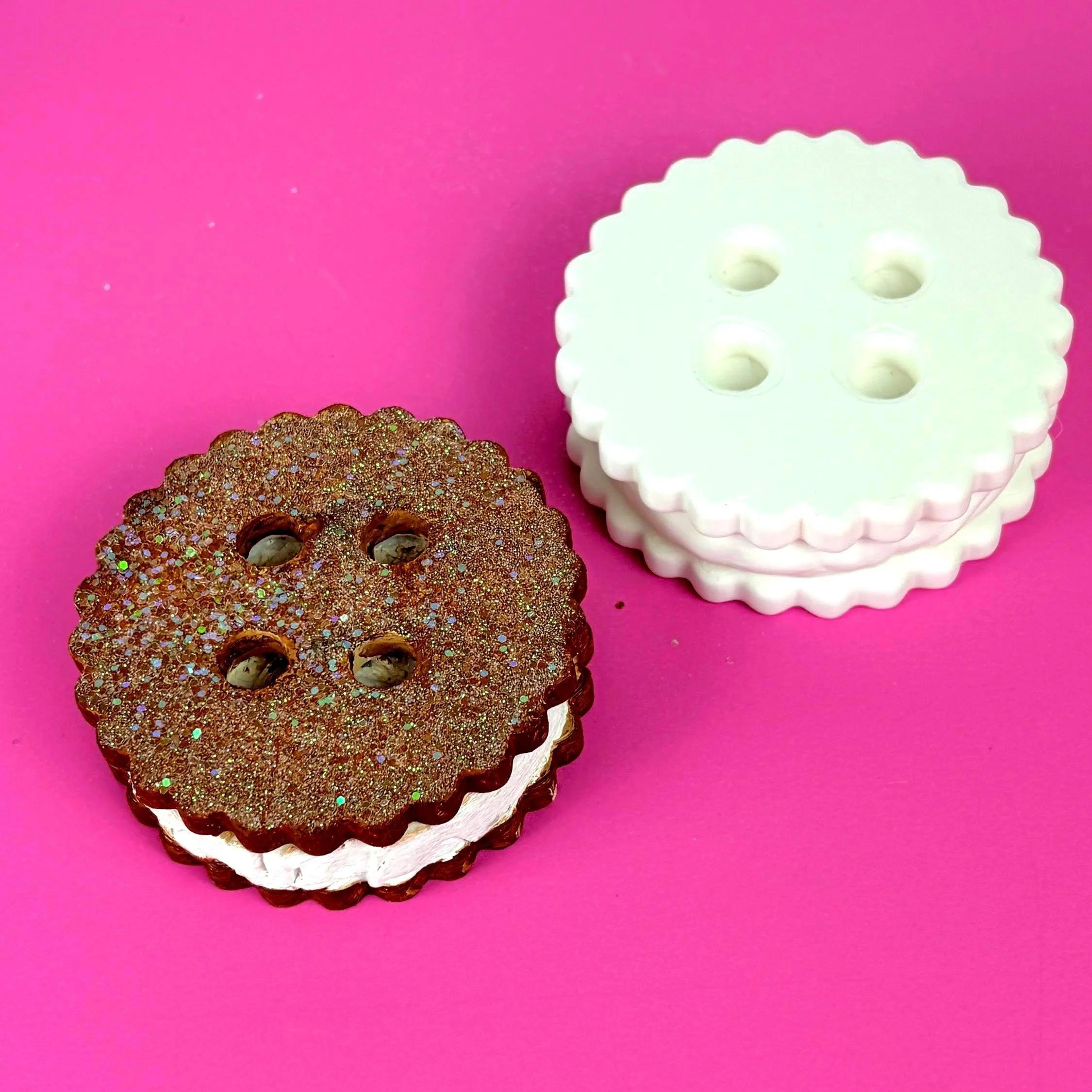 This Paint Your Own Fake Cookie is a 3D printed dessert-inspired craft blank designed to look like a sandwhich cookie or ice cream sandwich. It’s lightweight, durable, and ready for you to customize with paint, glitter, resin, faux icing, or spackle.