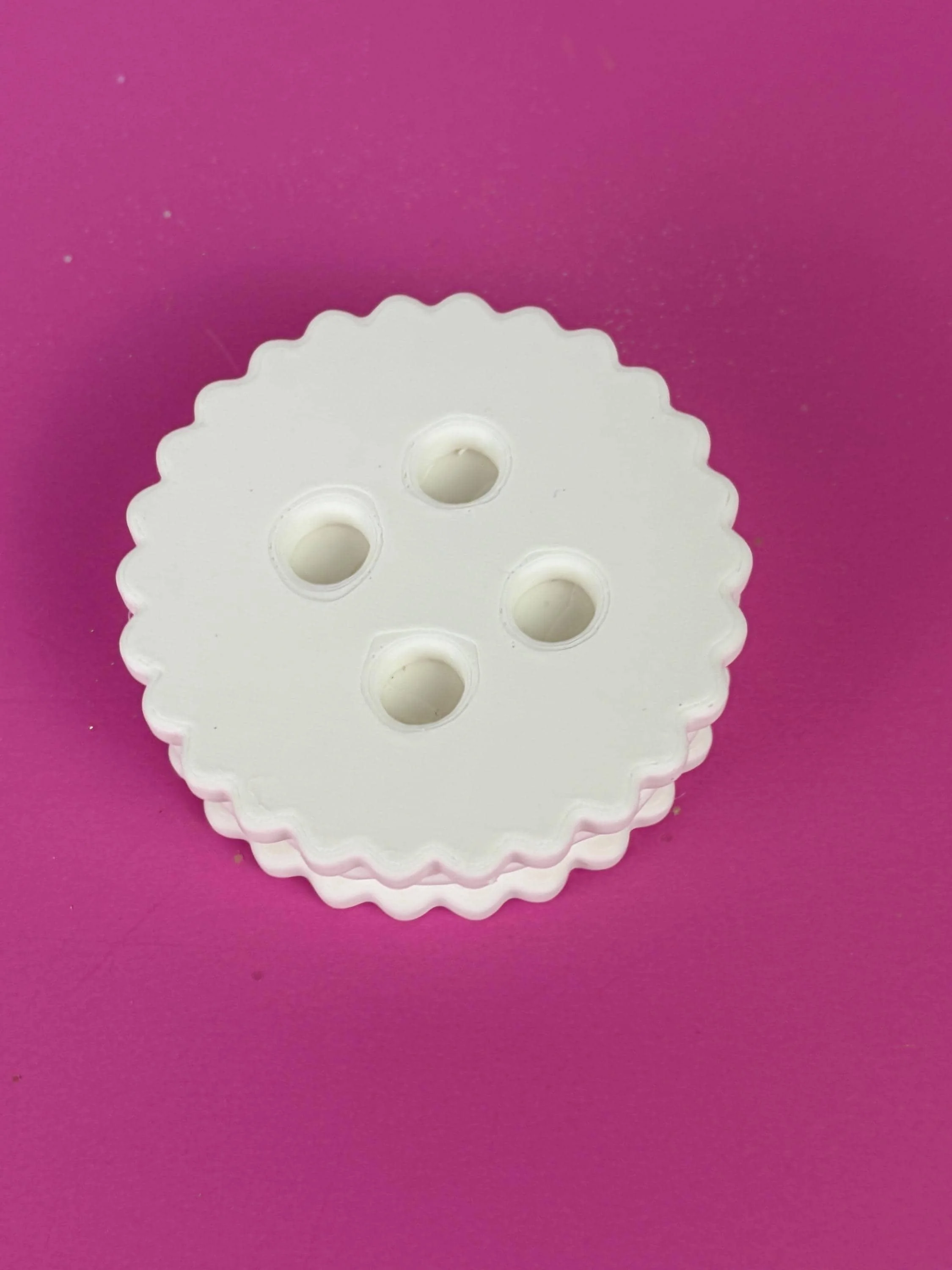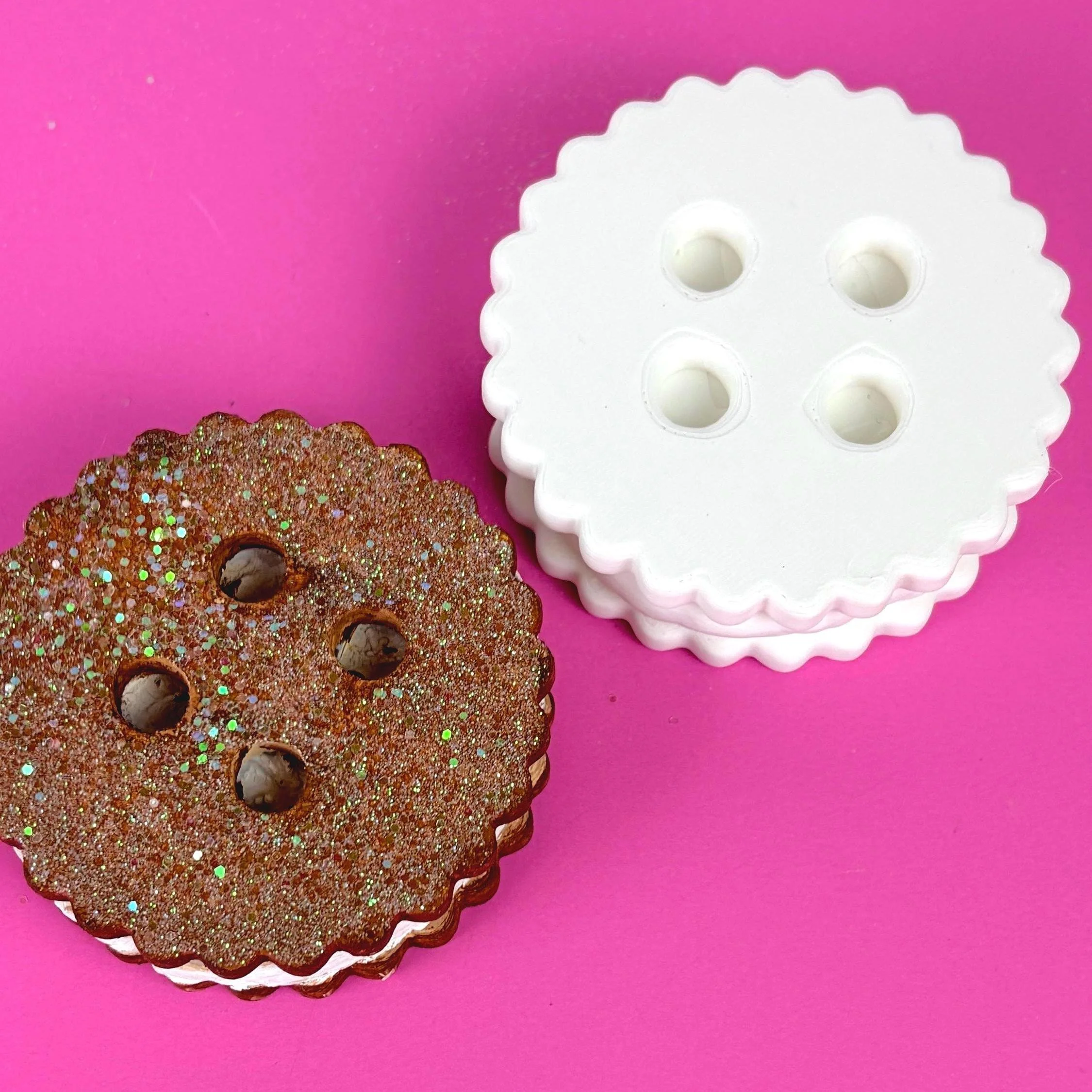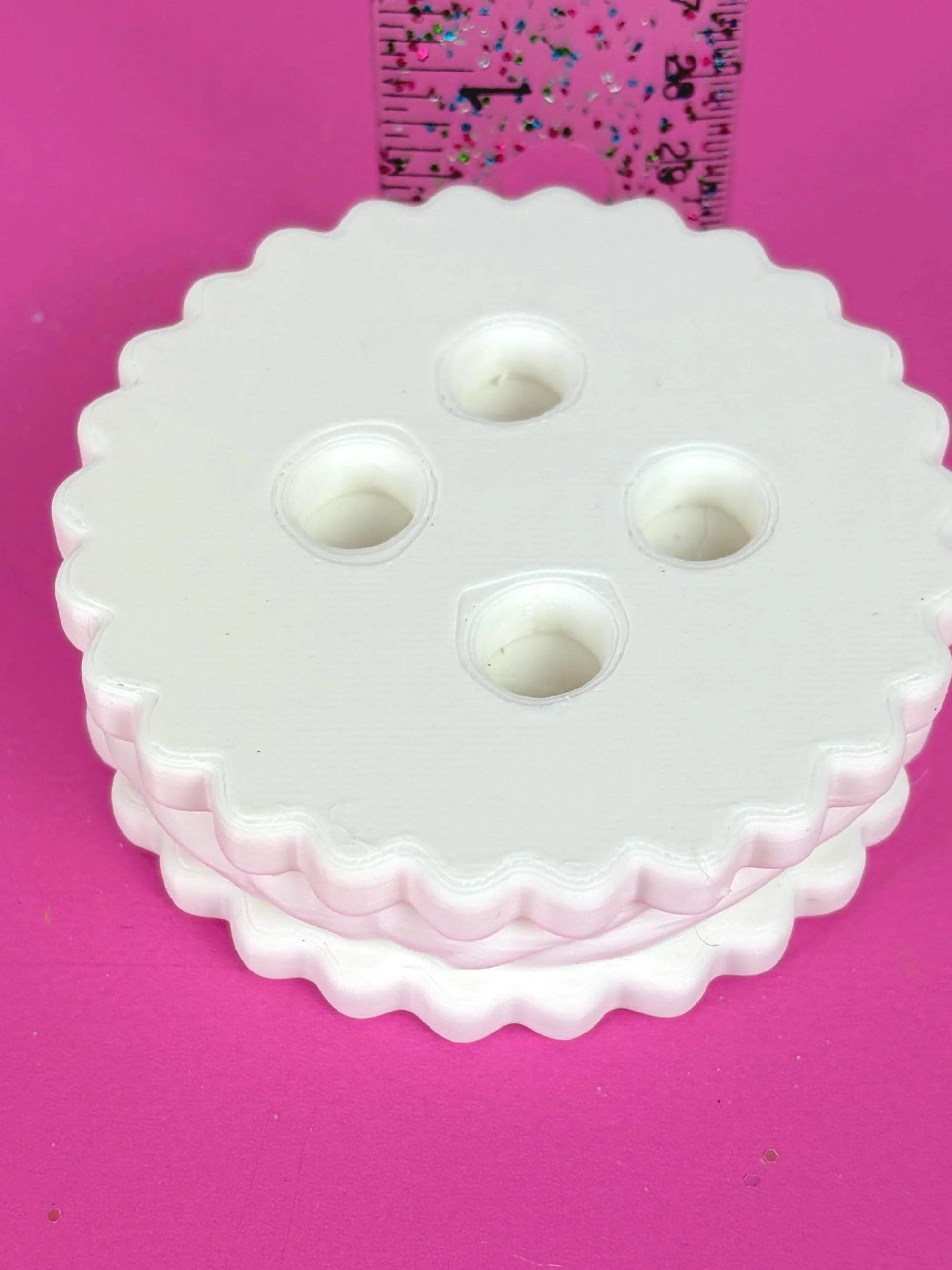 This Paint Your Own Fake Cookie is a 3D printed dessert-inspired craft blank designed to look like a sandwhich cookie or ice cream sandwich. It’s lightweight, durable, and ready for you to customize with paint, glitter, resin, faux icing, or spackle.