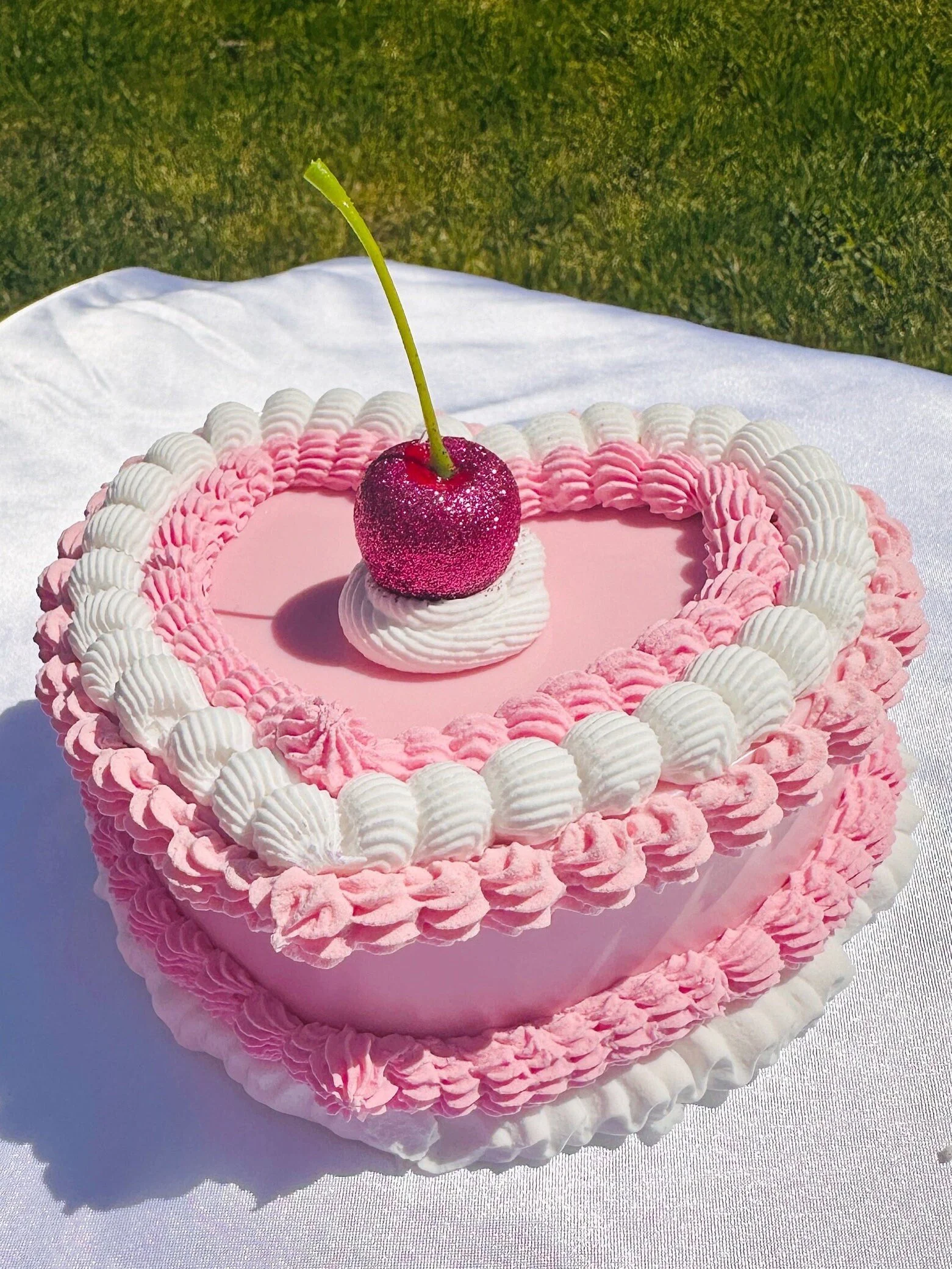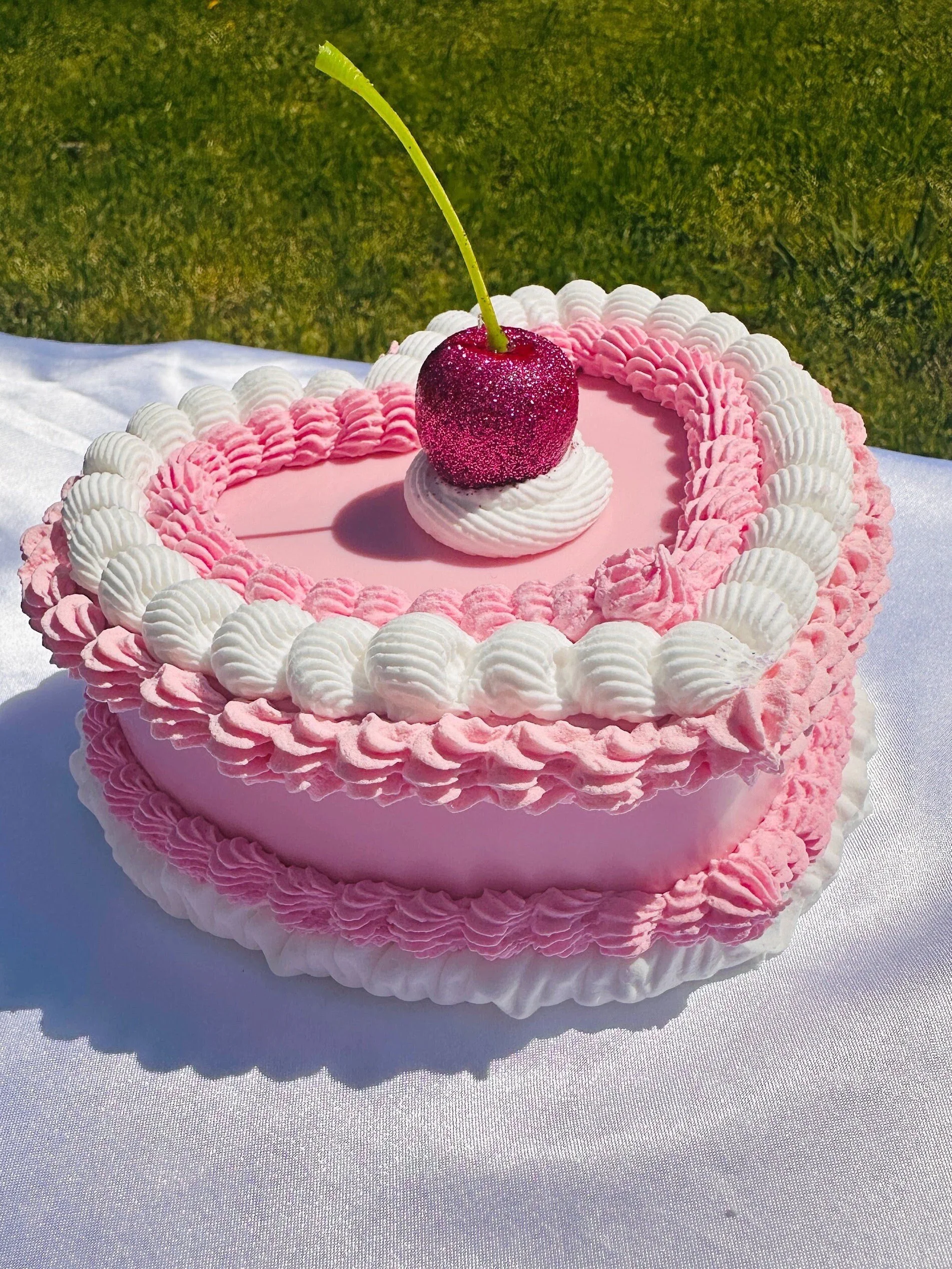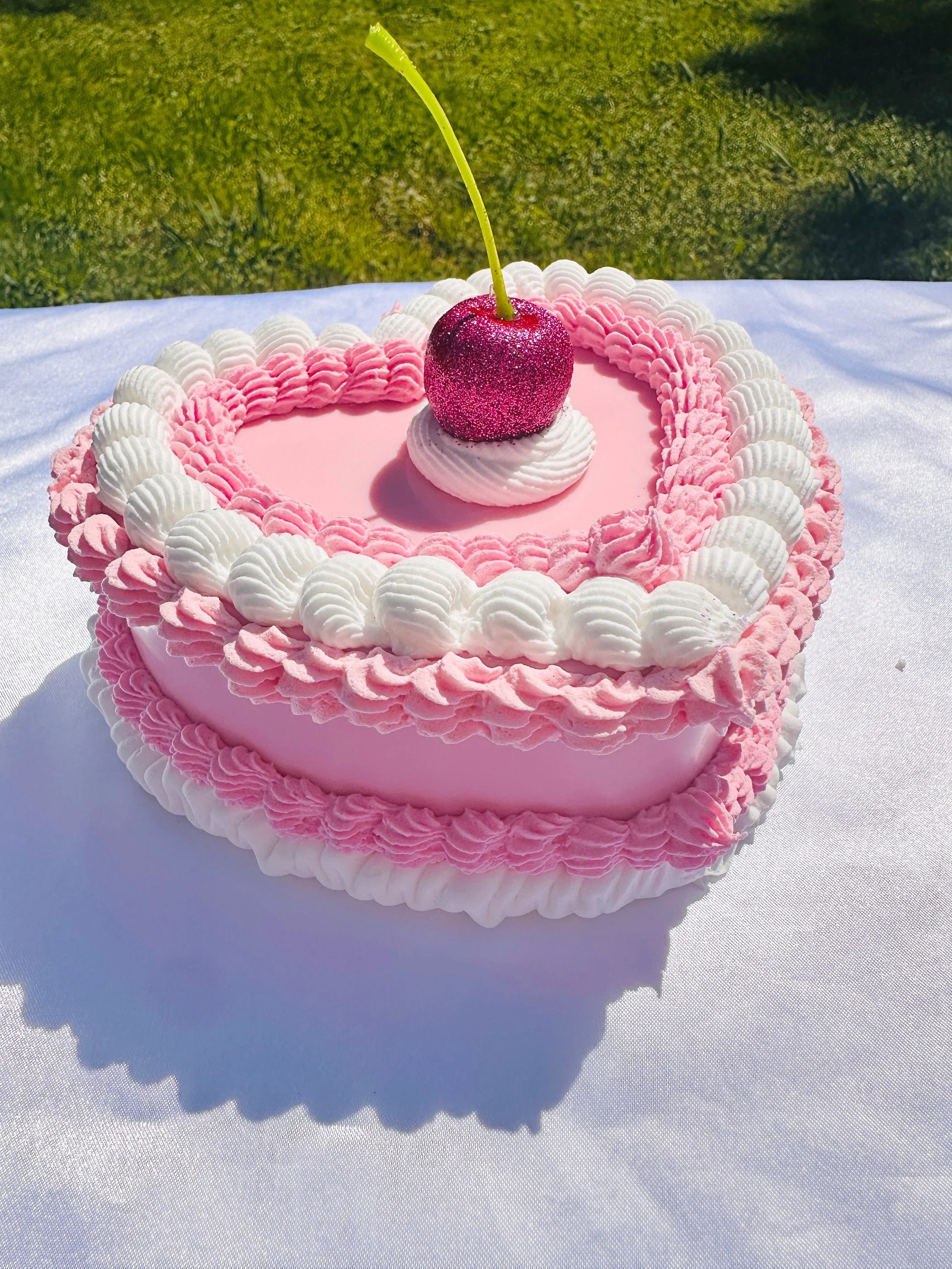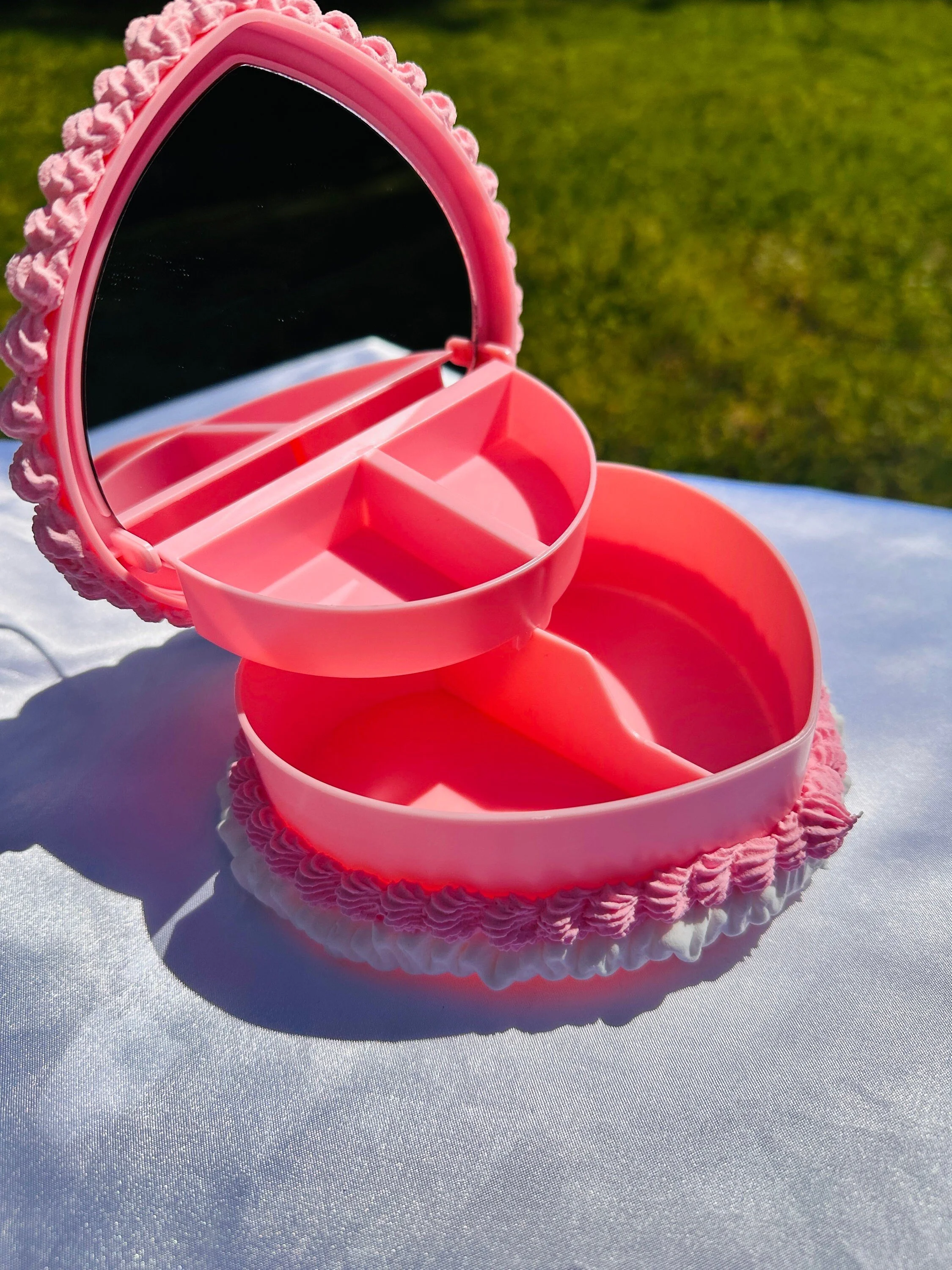 Pink Heart Cake Jewelry Box: Vintage Style with Glitter Cherry