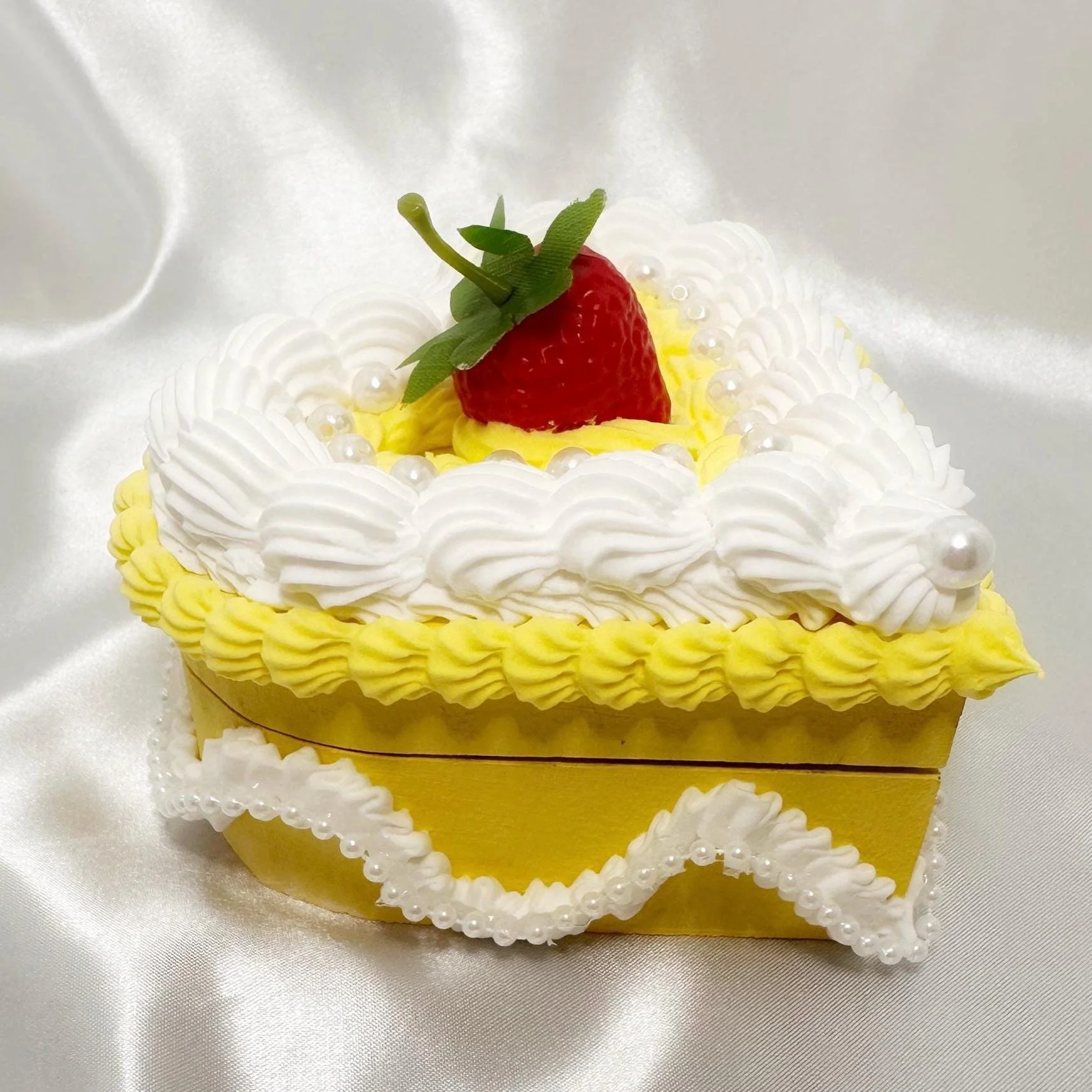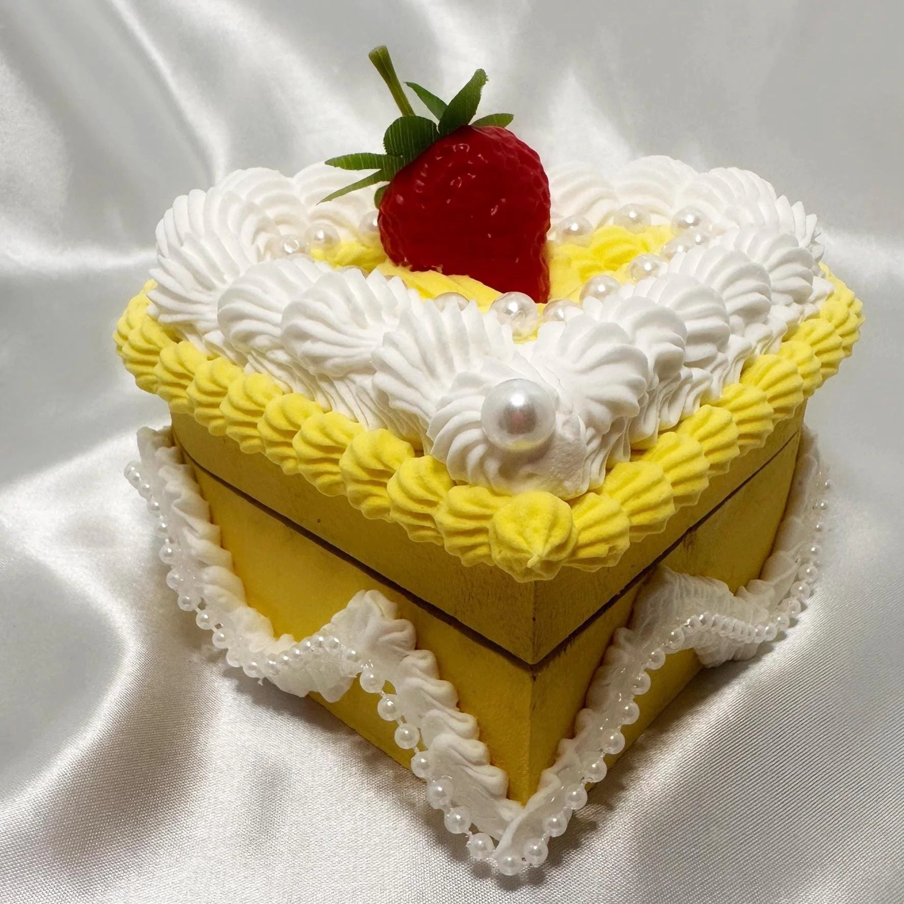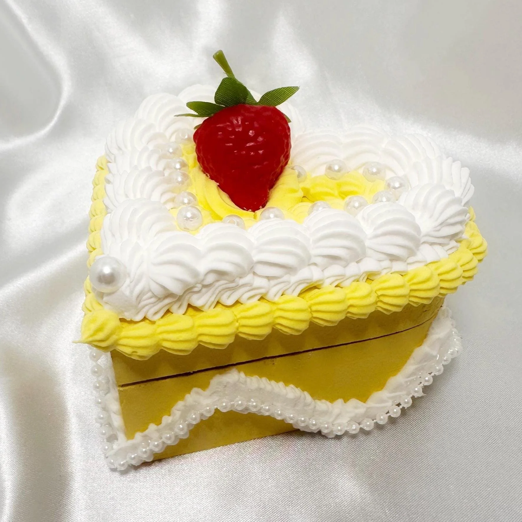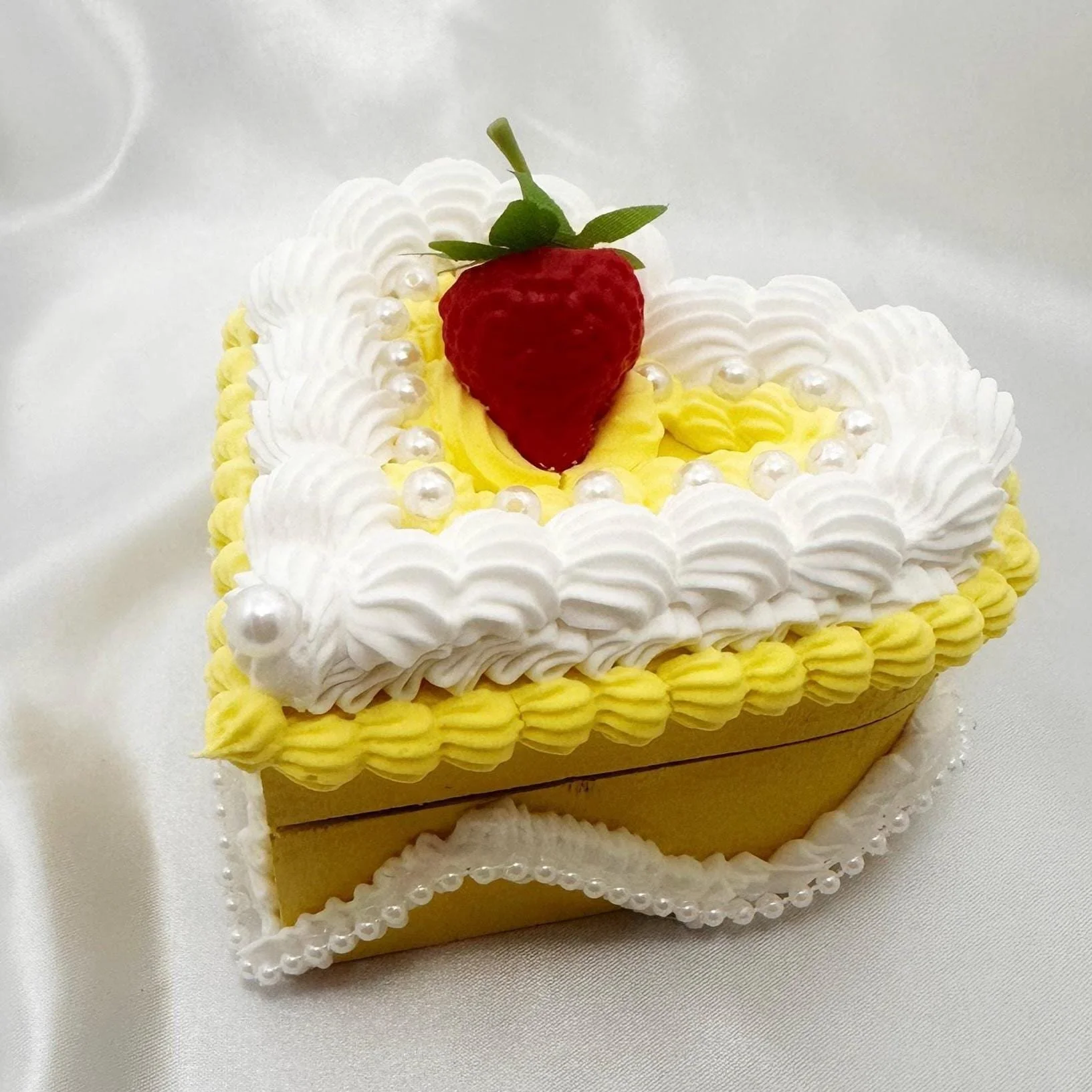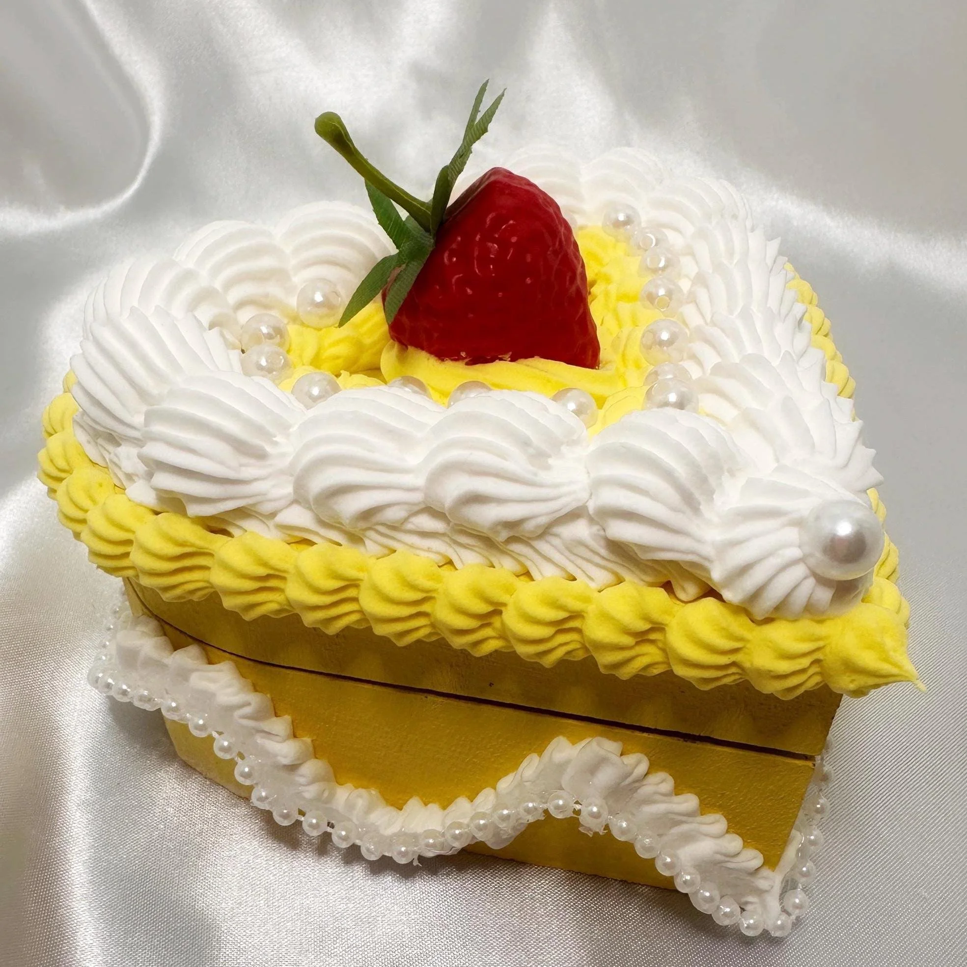 Yellow Heart Shaped Jewelry Box | Heart Cake Decor | Pearls & Strawberry Topper